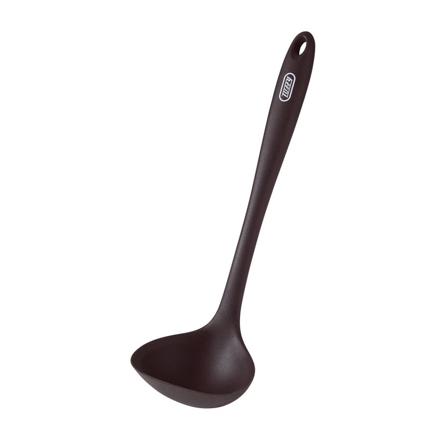 フライパンや鍋を傷つける心配が少ないシリコーン製のレードル(お玉(おたま))。
