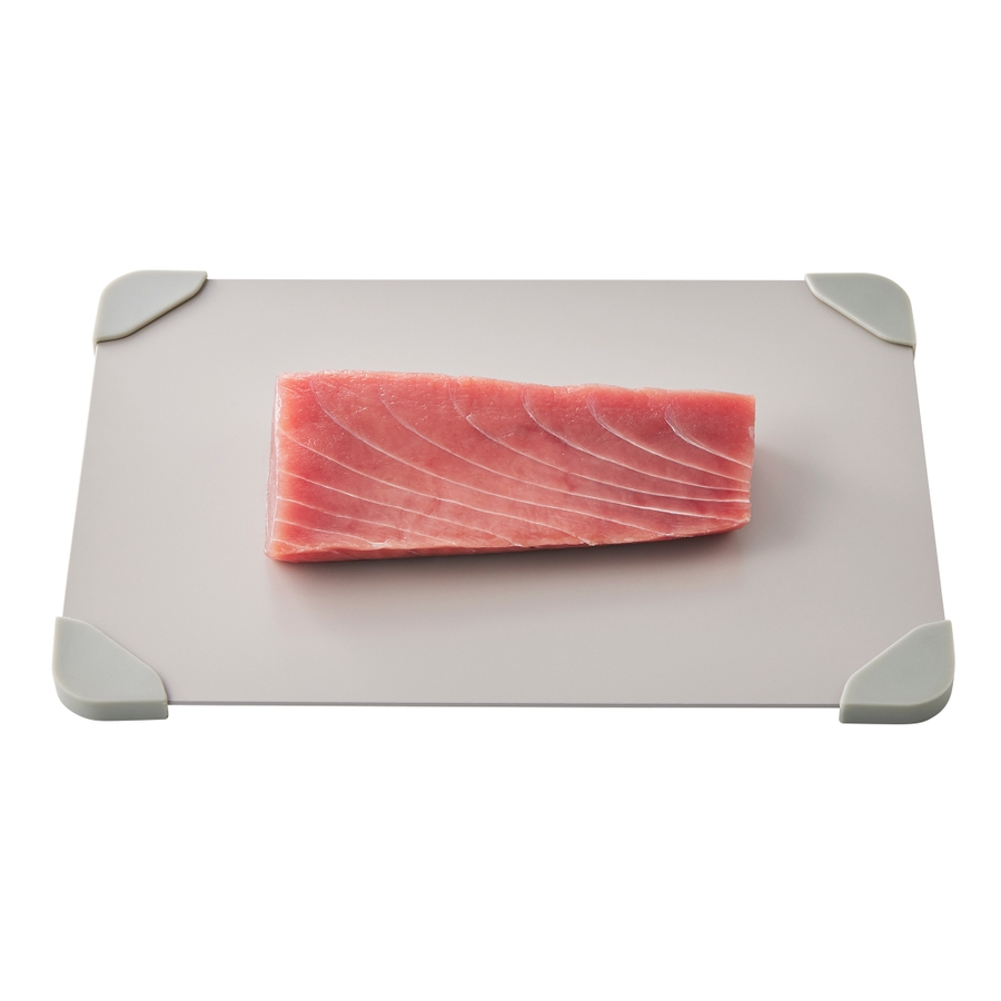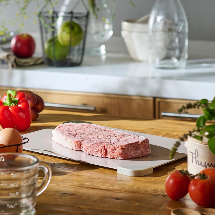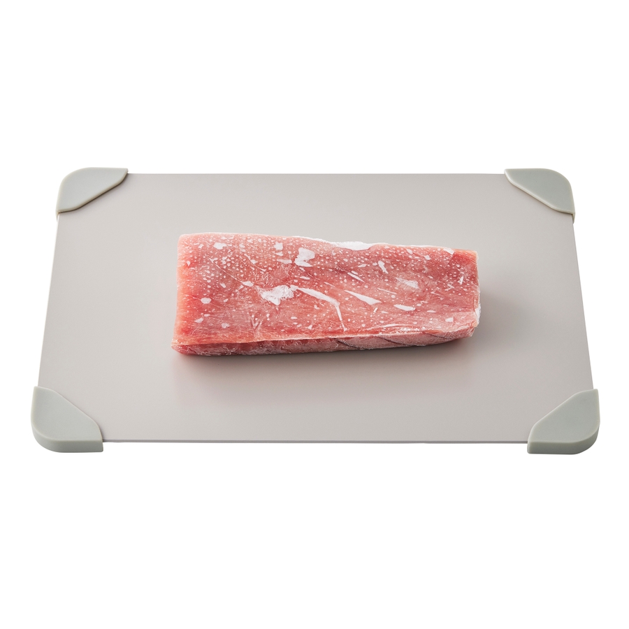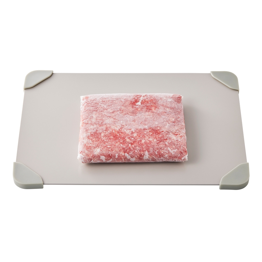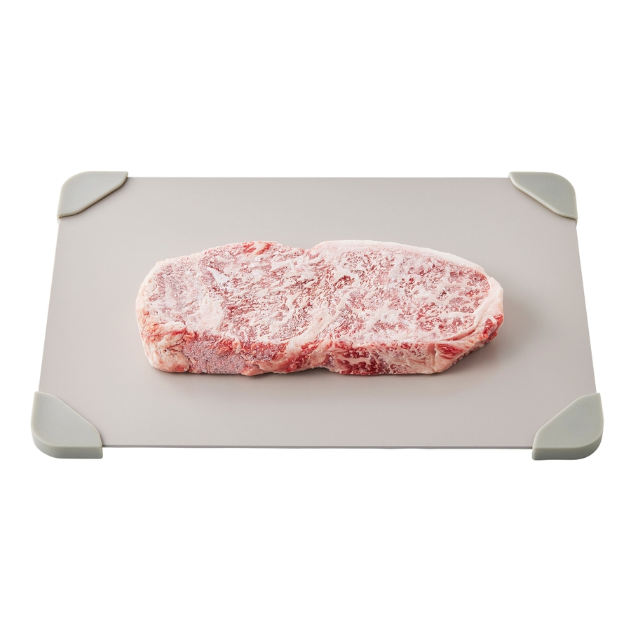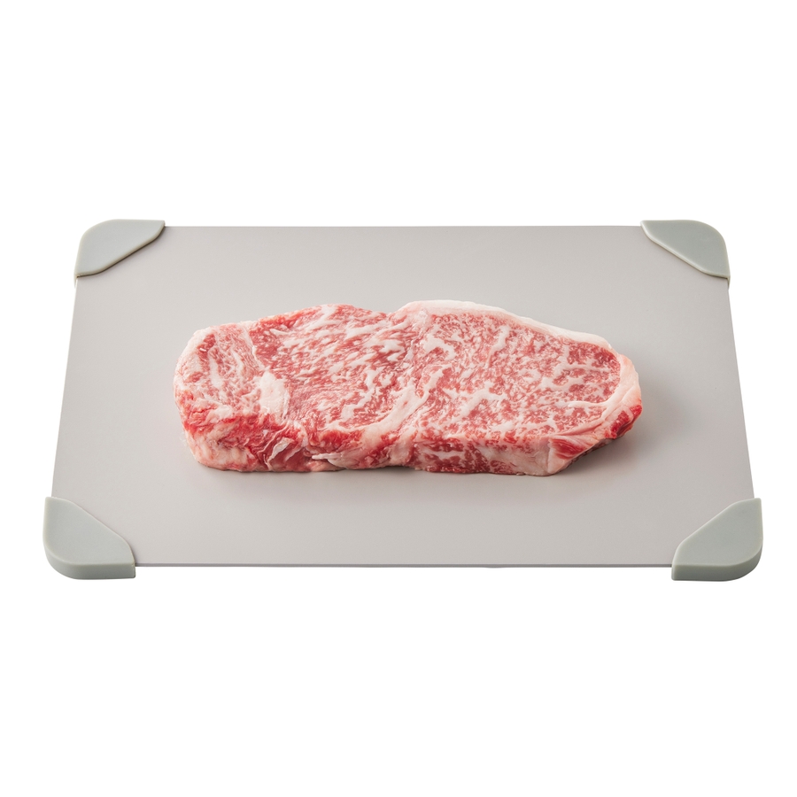熱伝導率の高いアルミニウム製で、冷凍食材のスピード解凍を促します。