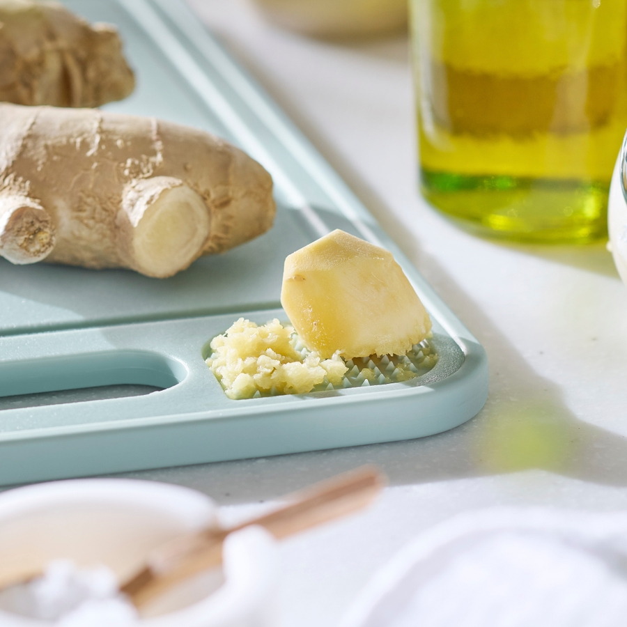 まな板面には薬味おろしがあり、洗い物の節約にも役立ちます。