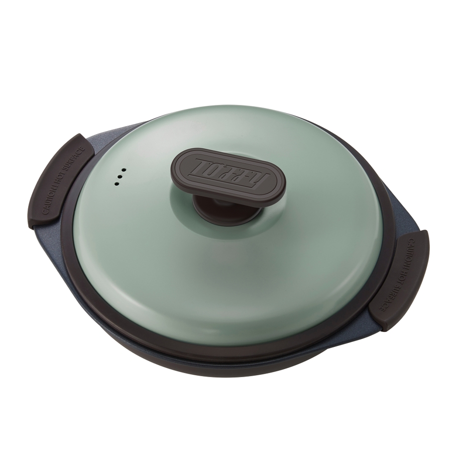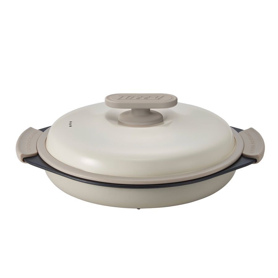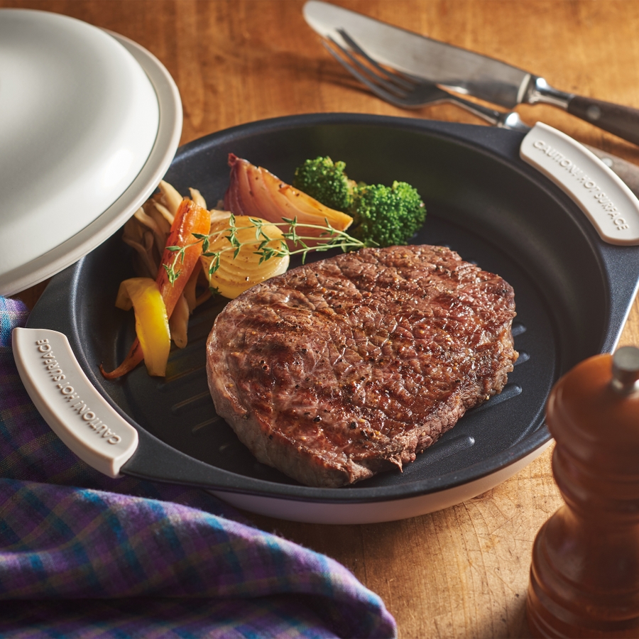 本体底面の特殊素材が電子レンジのマイクロ波を熱に変換し、プレートで加熱調理することで、
