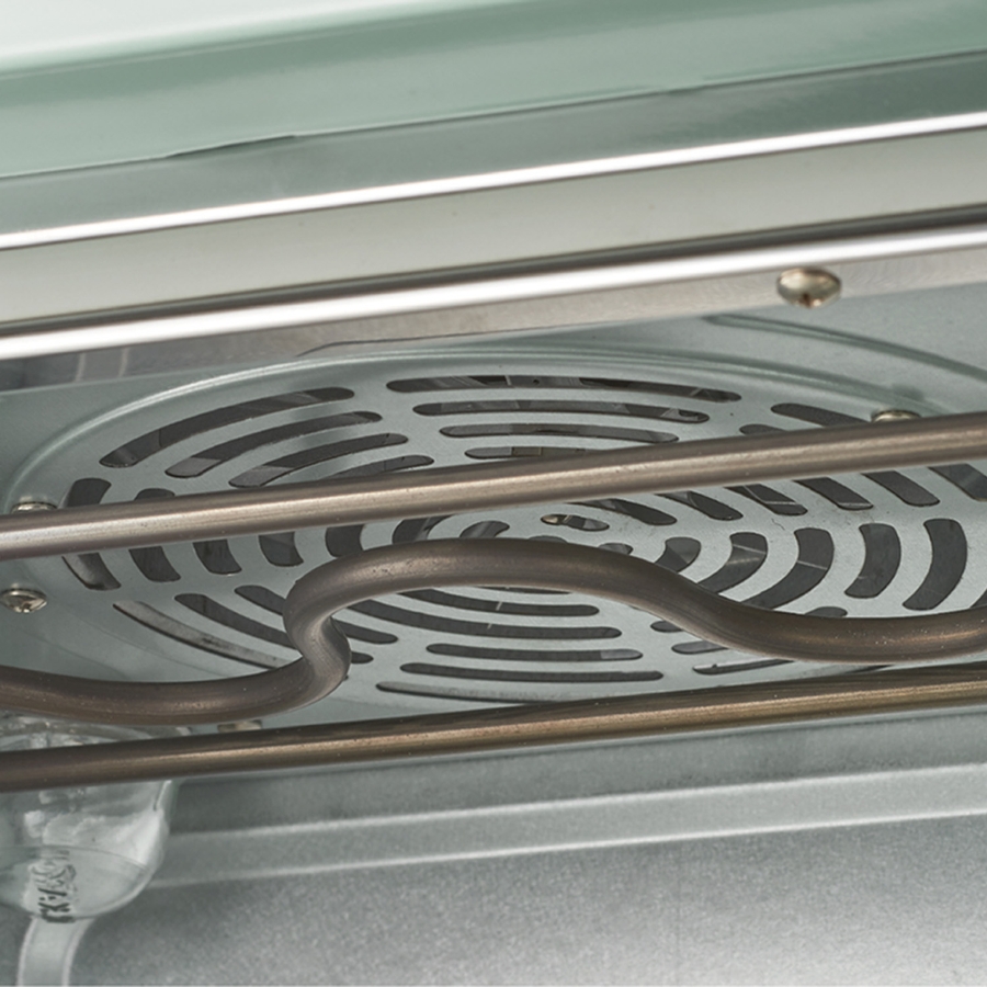 本体に内蔵されたファンが高温の熱風を循環させ、庫内の温度を均一に保ち、食材自体が持つ脂を利用して調理します。