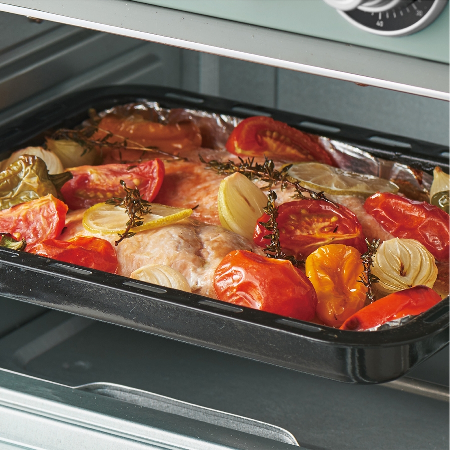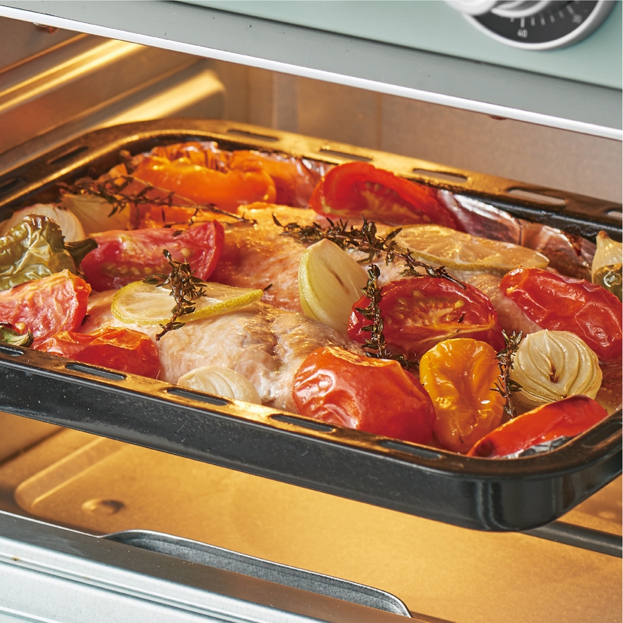 5つのヒーターを切り替えて「ノンフライ調理」「オーブン調理」「グリル調理」「スローベーク調理」「発酵」が選択できる1台5役!