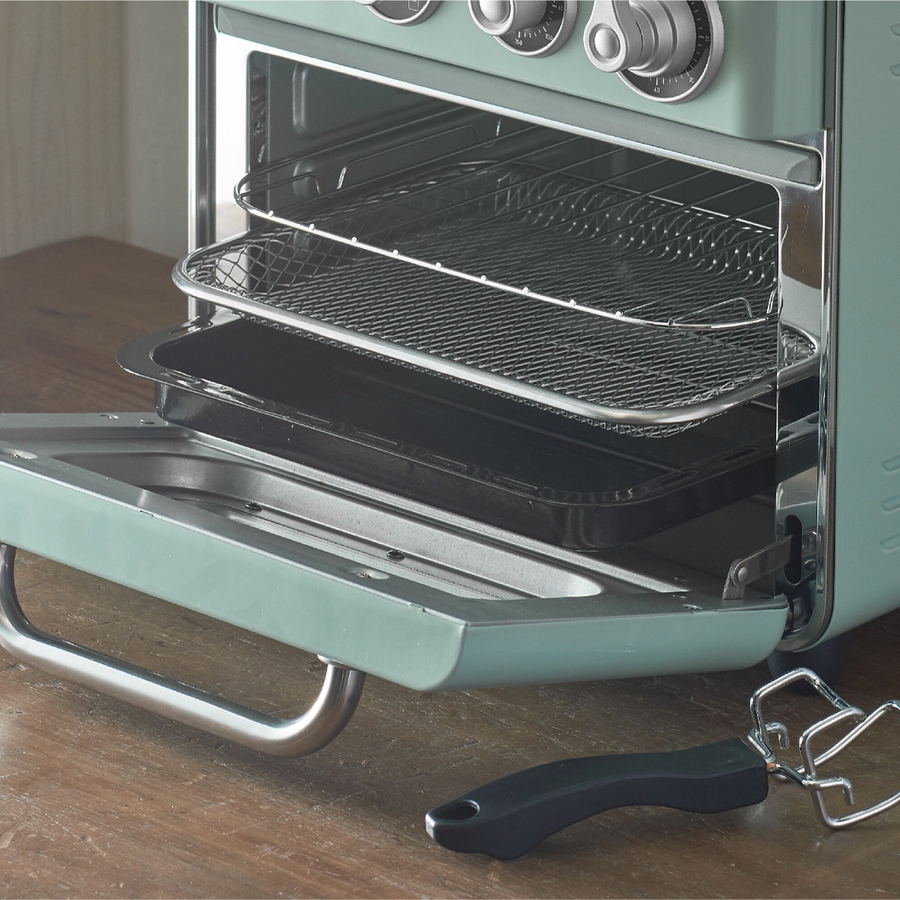揚げ物に便利なメッシュバスケットに、オーブンラック、トレイ、パンくずトレイ、ハンドルも付属。