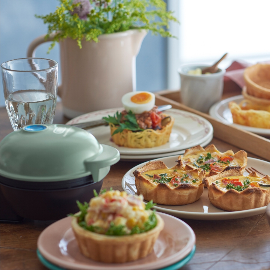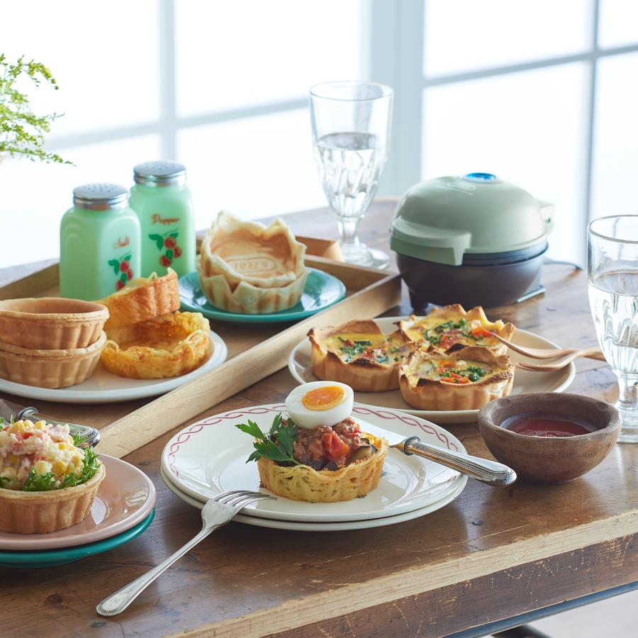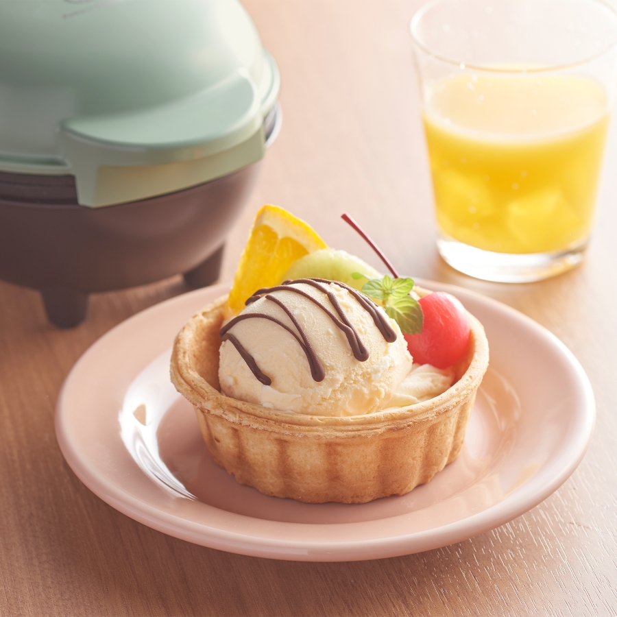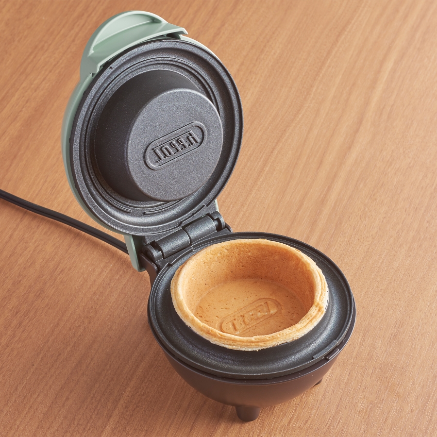 お好みの生地をセットするだけで食べられる器の焼き上がり!