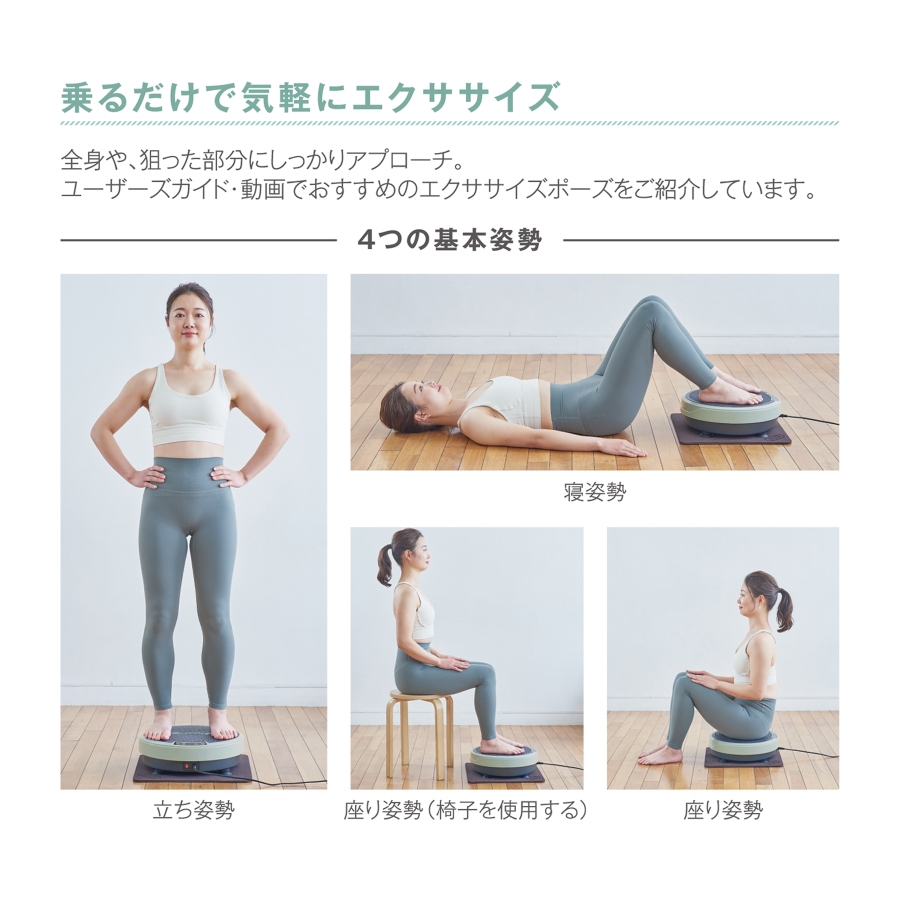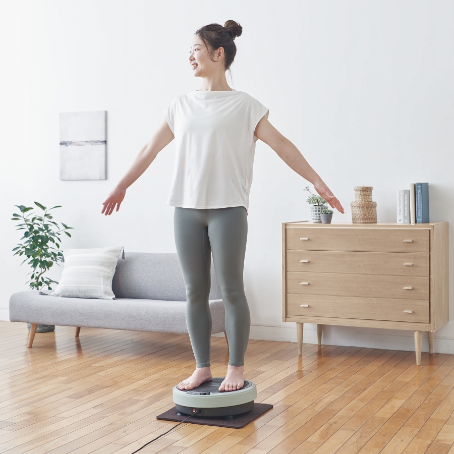 乗るだけで簡単トレーニング!コンパクトなのにパワフル振動で、全身の筋肉にアプローチ。
