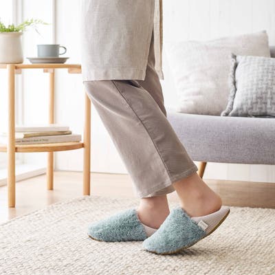 かかとを踏んでバブーシュ風にもできて、裏面には滑り止め付きで安心です。