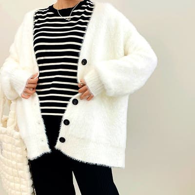 | ・今季のマスト素材シャギー糸で仕上げましたニットカーディガン。 |