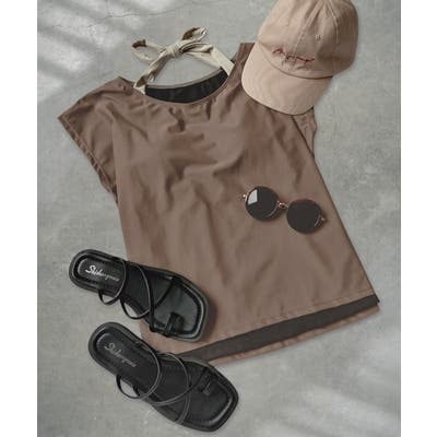 ホルターネックのストラップ部分とトップスは同生地で、インナーは軽めのメッシュ生地になっています。
