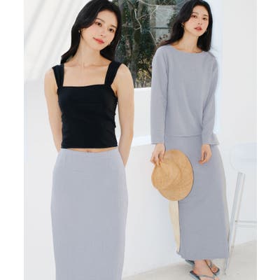 ロングスカートはスリット入りデザイン
