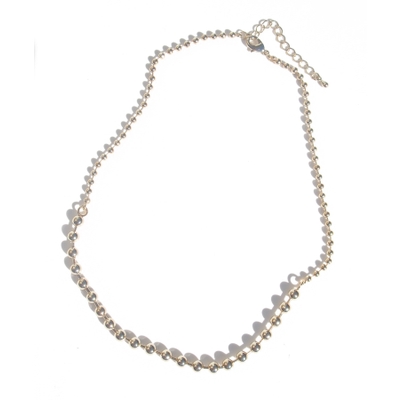 ボリュームの違う2種類のボールチェーンを使用し、ネックラインがきれいに見えるよう切り替えています。どんなファッションでもポイントになります。