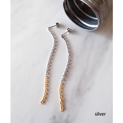 バイカラーが楽しめるシンプルなチェーンピアス。