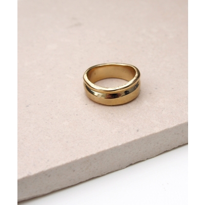 ミラーのような艶のあるメッキが上品な印象のデザインリングです。