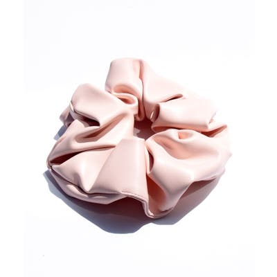 レザー調の生地で仕上げたパステルカラーのシュシュ。ボリュームがあるのでヘアアレンジがぱっと華やぎます。