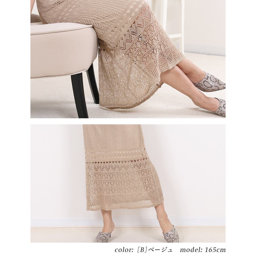 | アイテム説明 | アクリル75%ナイロン25%の透かし編み素材を使用した、選べるボトムス。ウエストゴム、ウエスト紐有りで、楽ちんな履き心地!さっと履いてお出かけできる優秀ボトムス。ポリエステル100%裾下25cmまでの裏地付きで安心。透かし編み素材は暑い季節にも涼しく快適◎ どんなトップスにも合うシンプルな無地デザイン。 [A]ニットパンツ。形はトレンドのフレアパンツ・裾はスカラップデザイン。 [B]ニットスカート。形はAラインスカート・裾はスカラップデザイン。 |