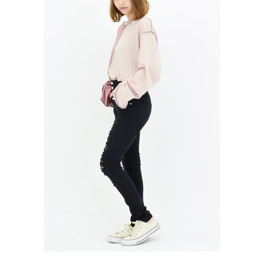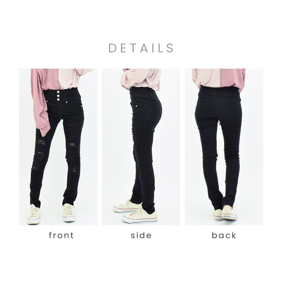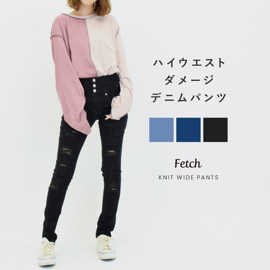 ダメージデニム ハイウエスト スキニーパンツ
