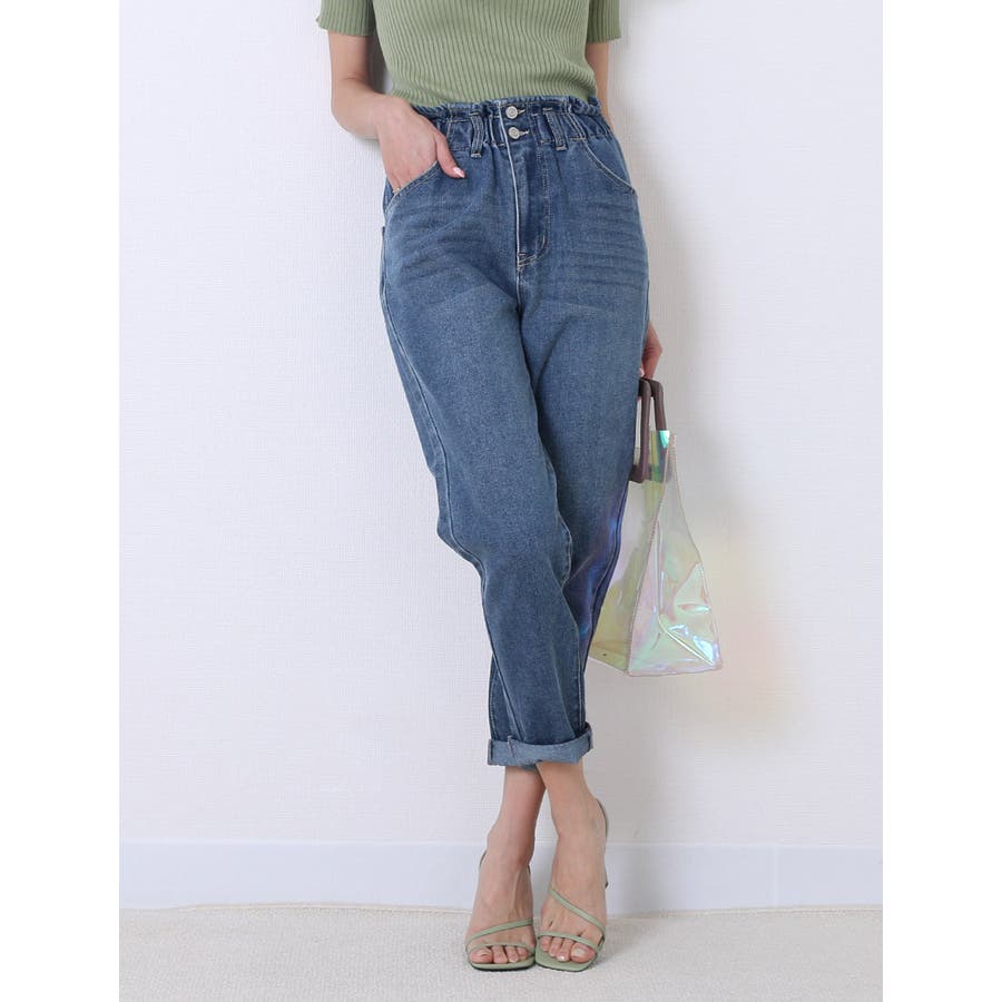 きれいめテーパード可愛いMOMデニムパンツ 人気ハイウエストパンツ ハイウエストデニム キレイめ テーパードパンツ