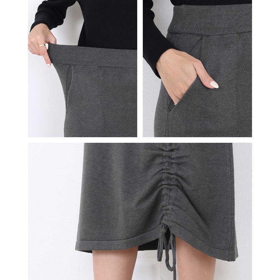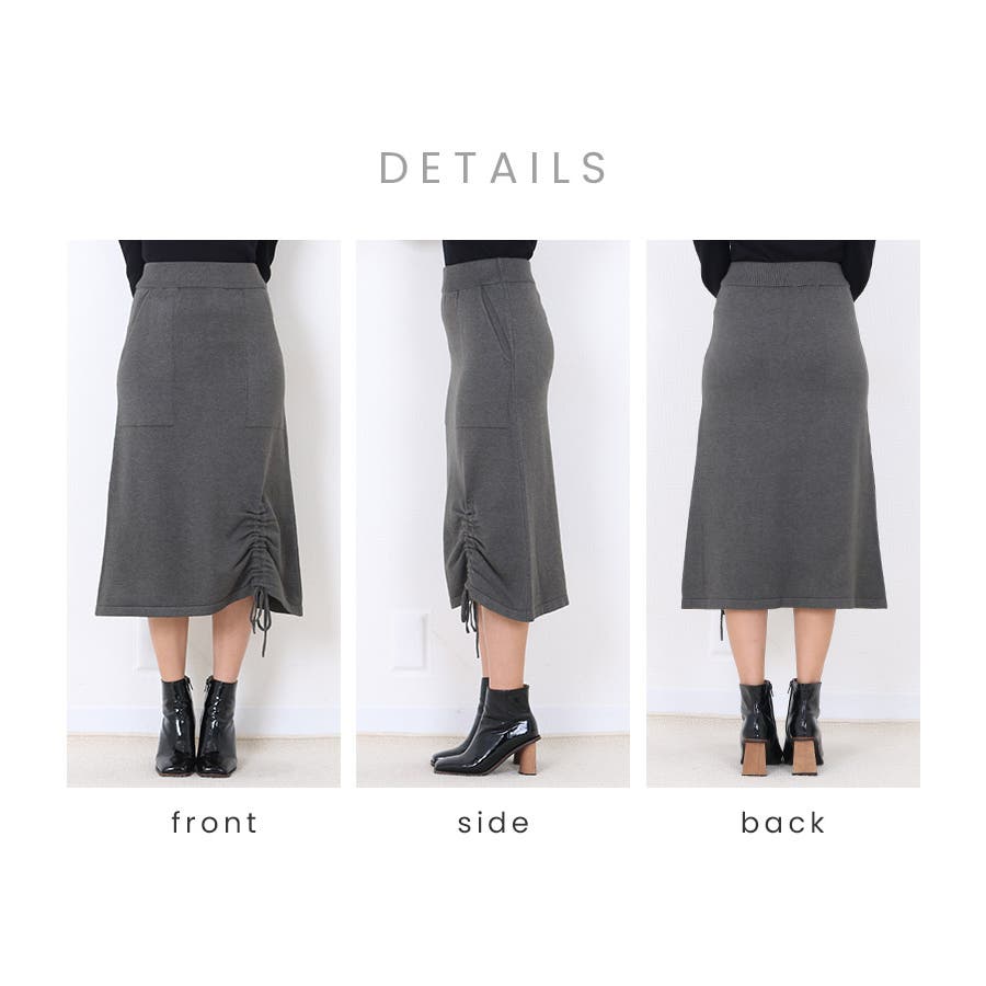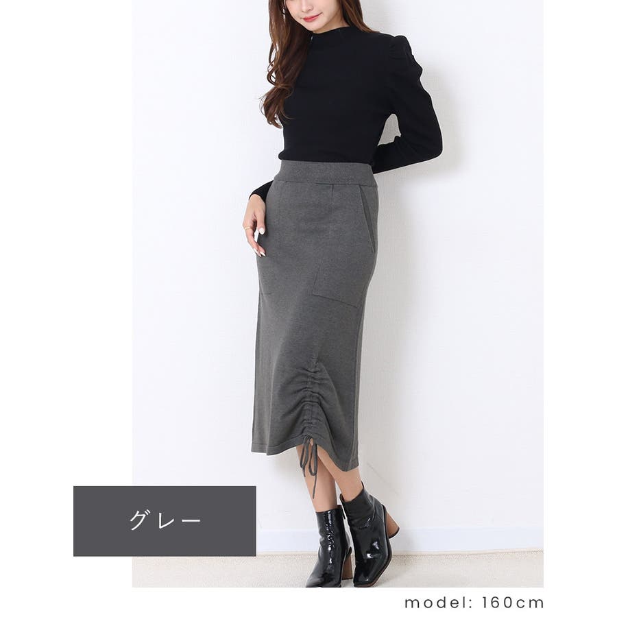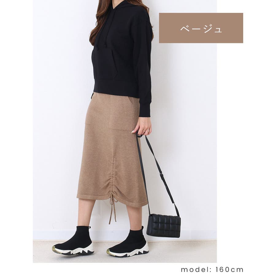 | アイテム説明 | カジュルテイストのニットスカート 流行のベイカーポケットデザインにトレンドあるルーシュデティールデザイン 肌触り良いニット素材のウォーム感のあるスカート。 |