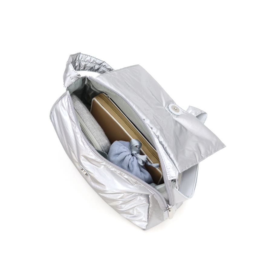 ・中綿を入れたソフトなデザインと程よい光沢素材が持つだけで旬な印象