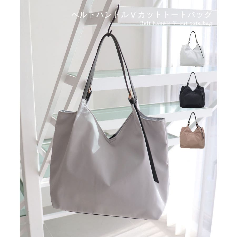 【デイリー/軽量/シーズンレス】ベルトハンドルVカットトートバッグ