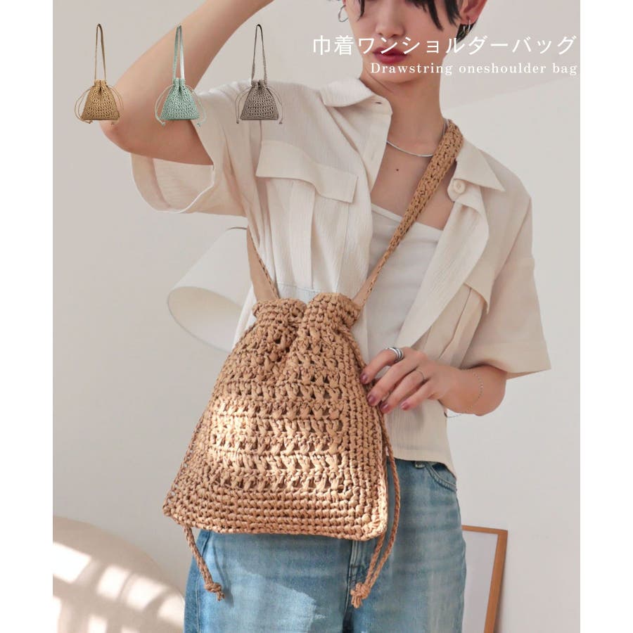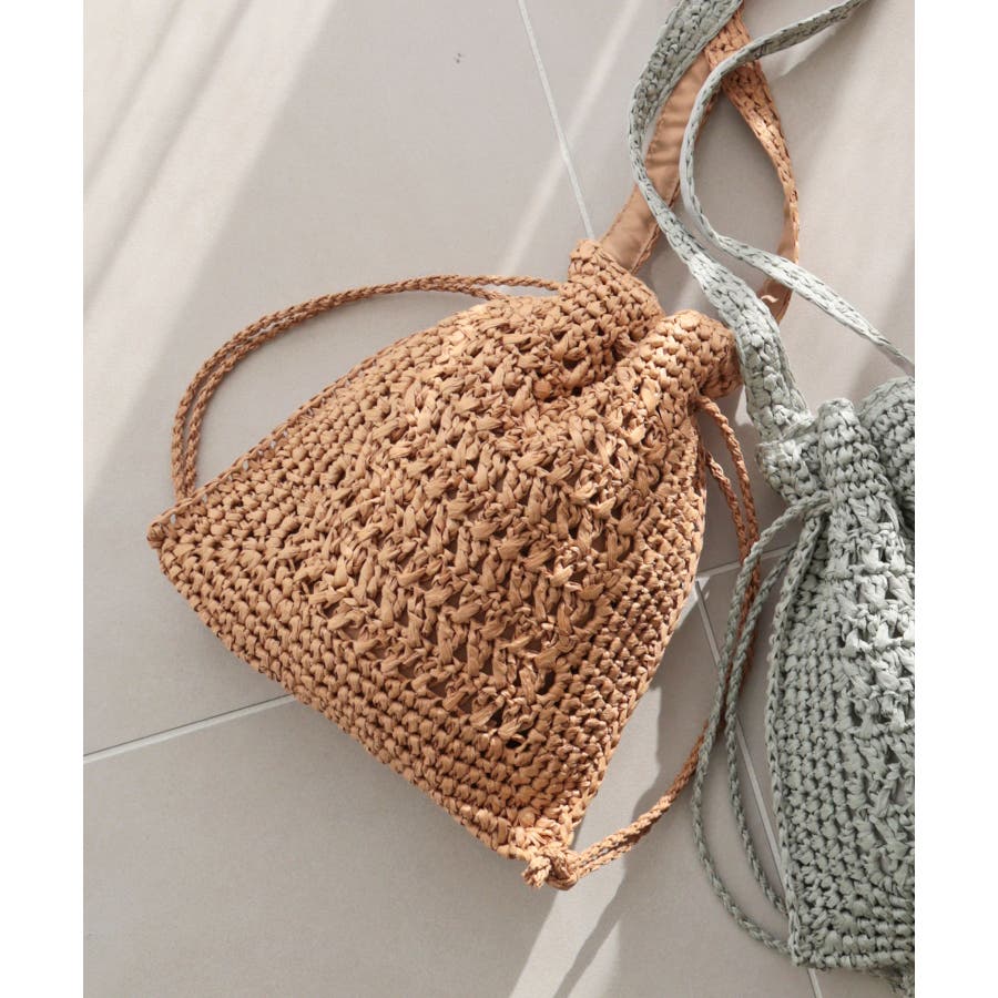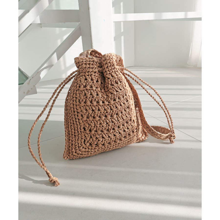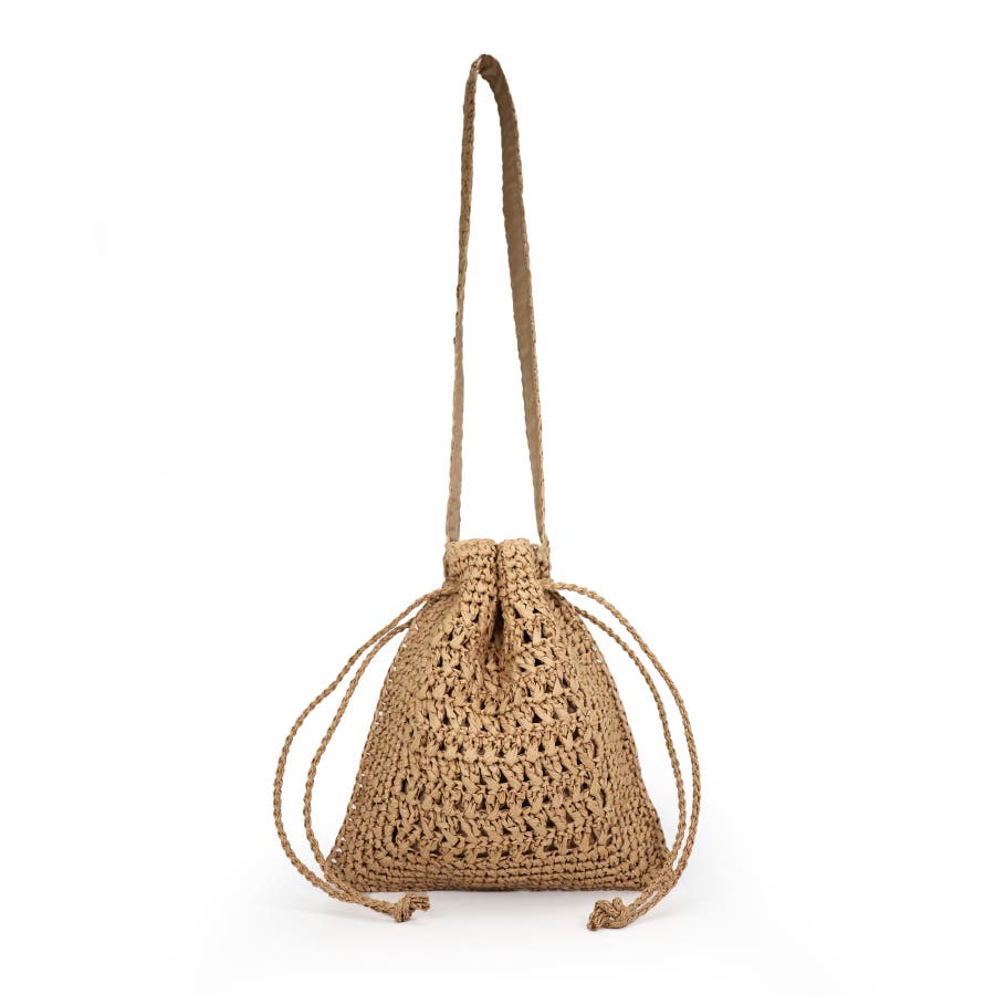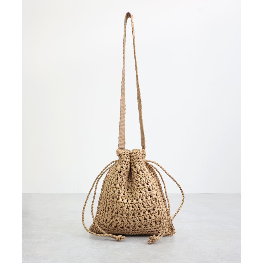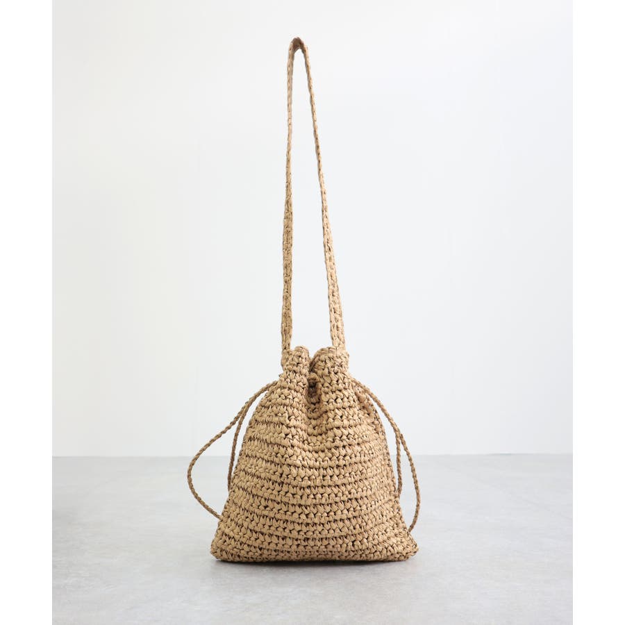 【カゴバッグ/リゾート/軽量】巾着ワンショルダーバッグ