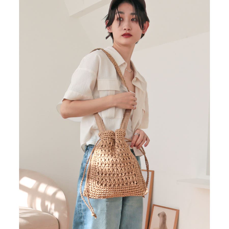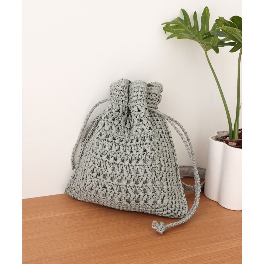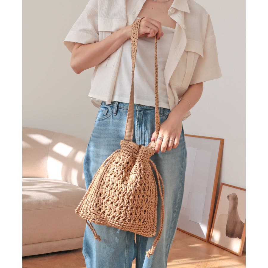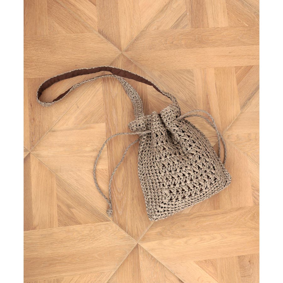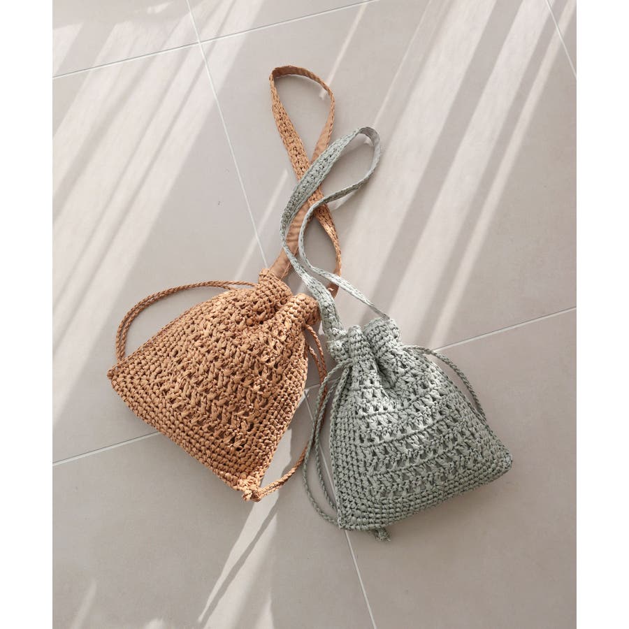 【カゴバッグ/リゾート/軽量】巾着ワンショルダーバッグ