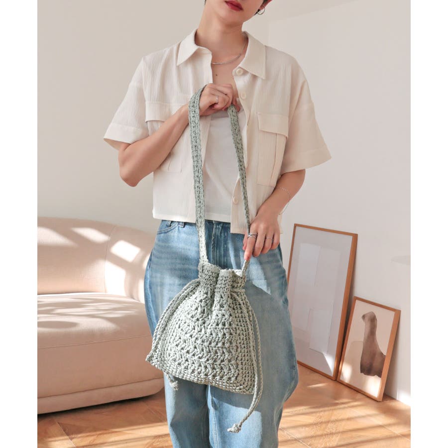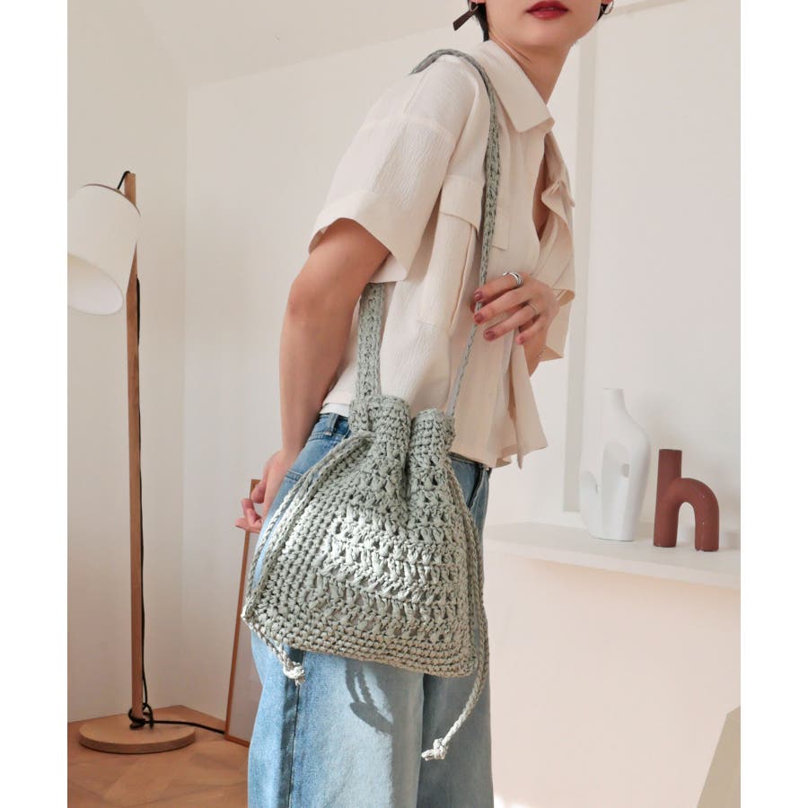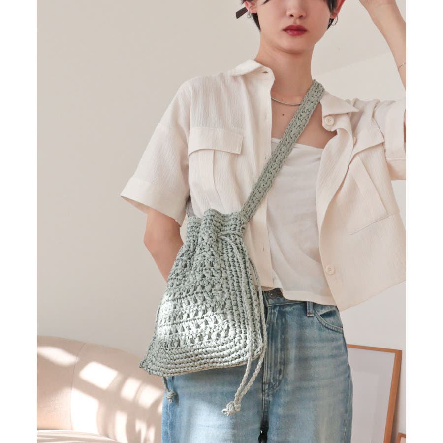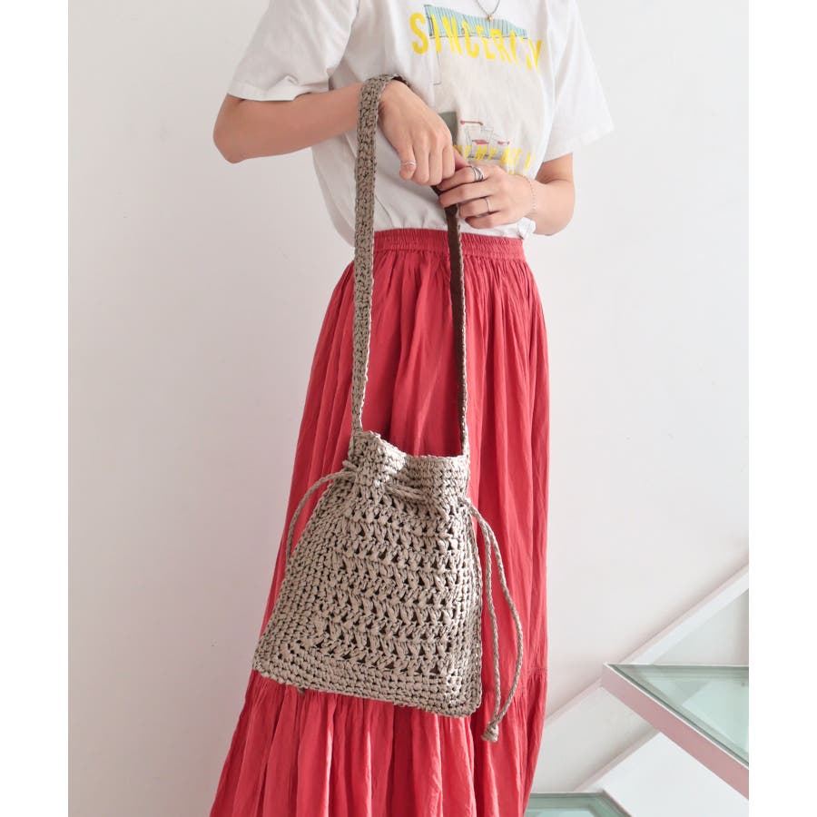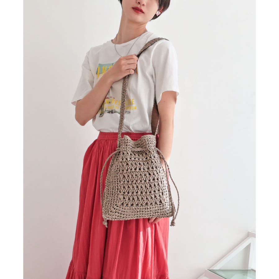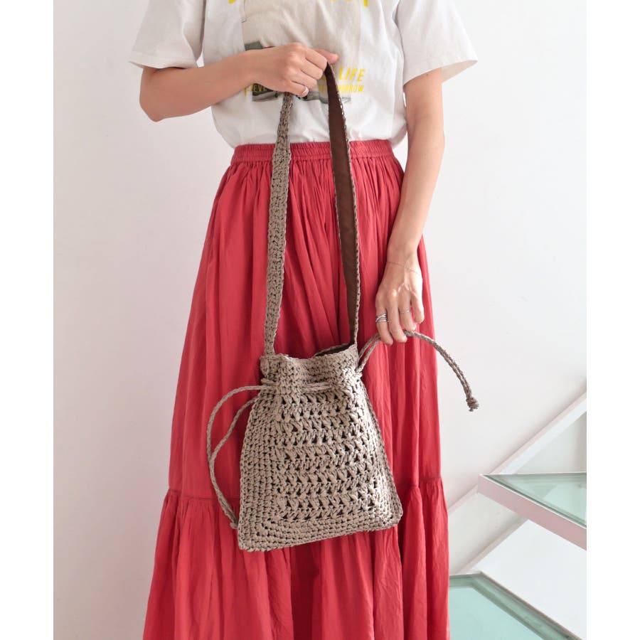 【カゴバッグ/リゾート/軽量】巾着ワンショルダーバッグ