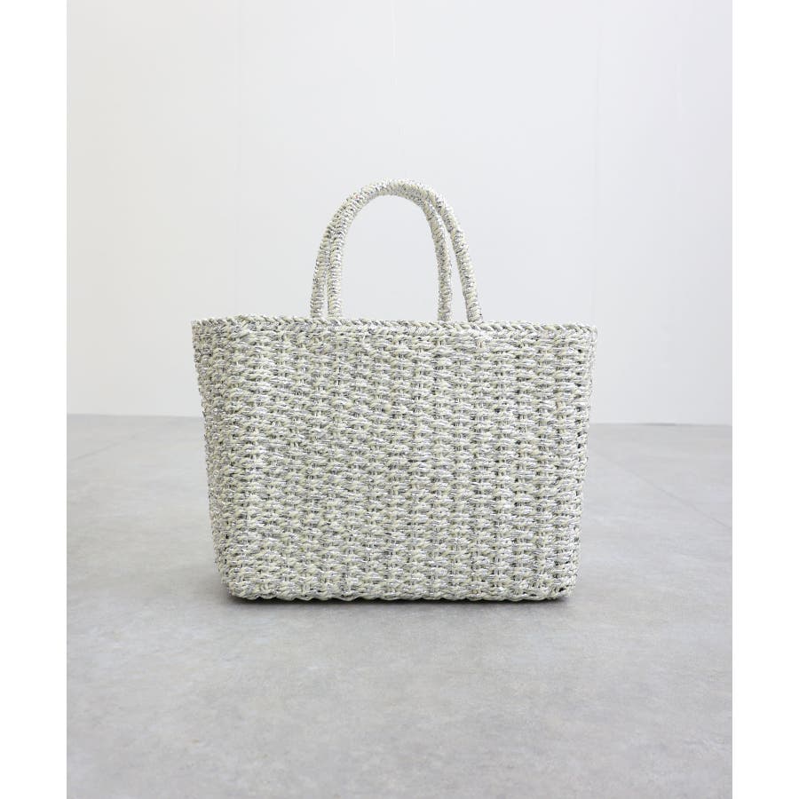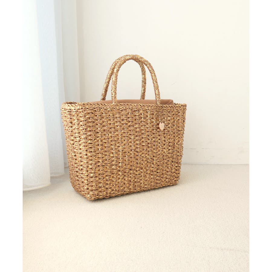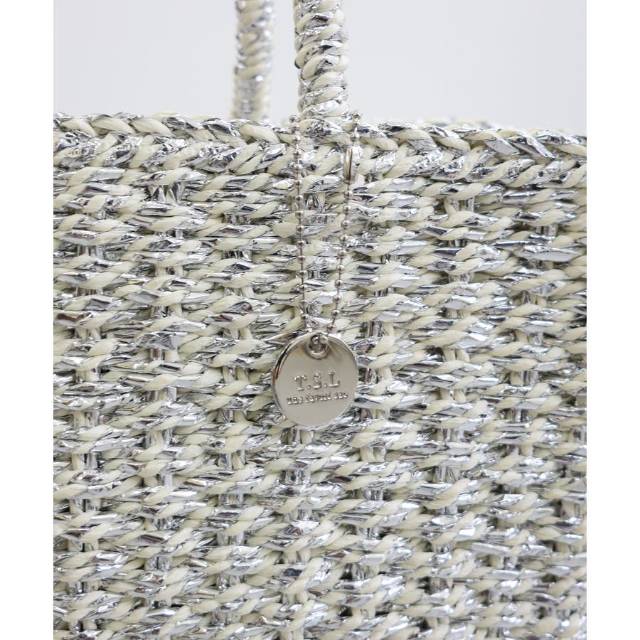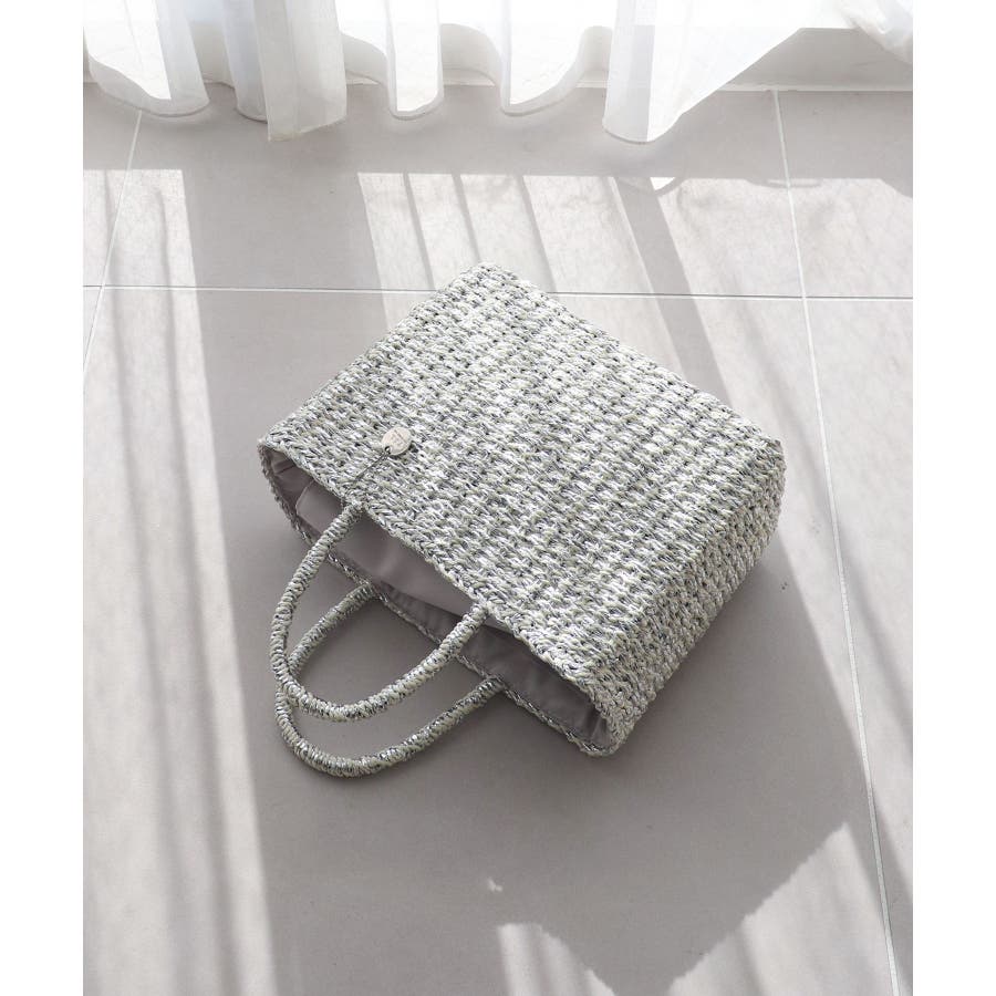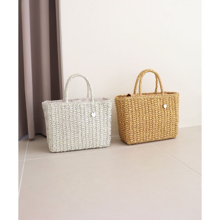 【カゴバッグ/リゾート/軽量】メタリックミックスペーパートートバッグ