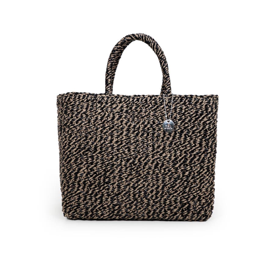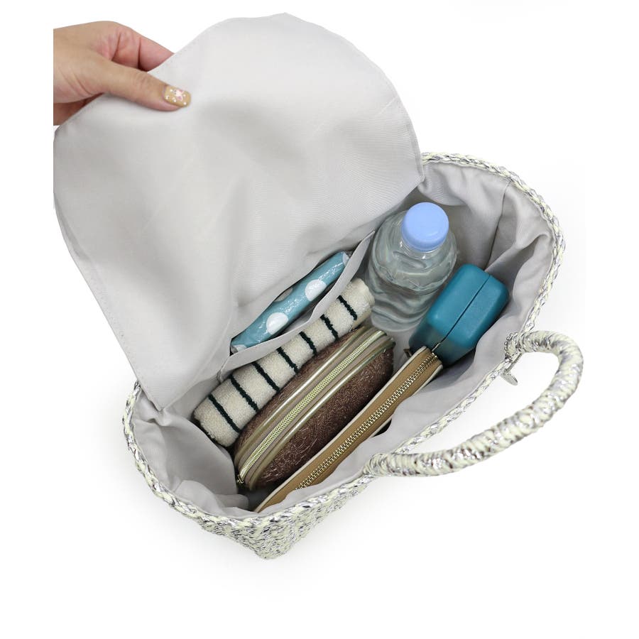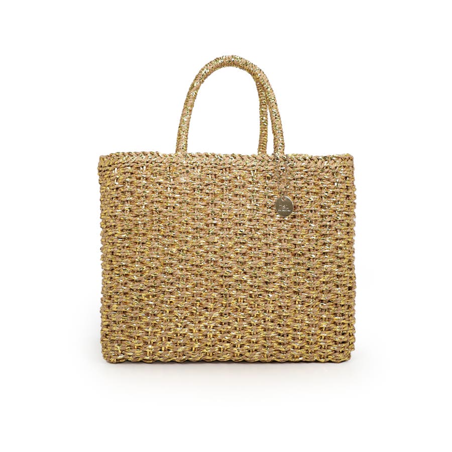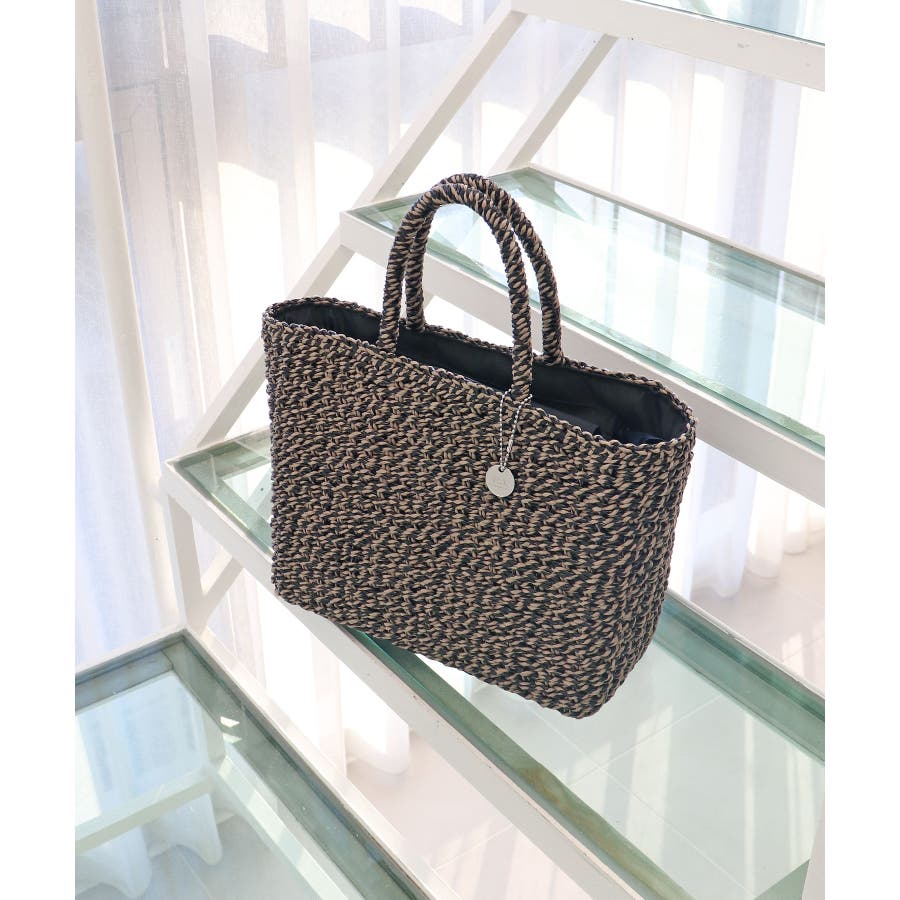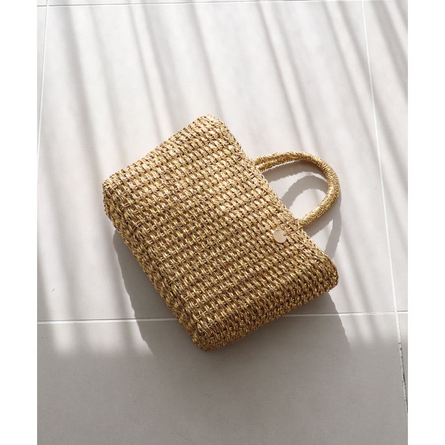 【カゴバッグ/リゾート/軽量】メタリックミックスペーパートートバッグ