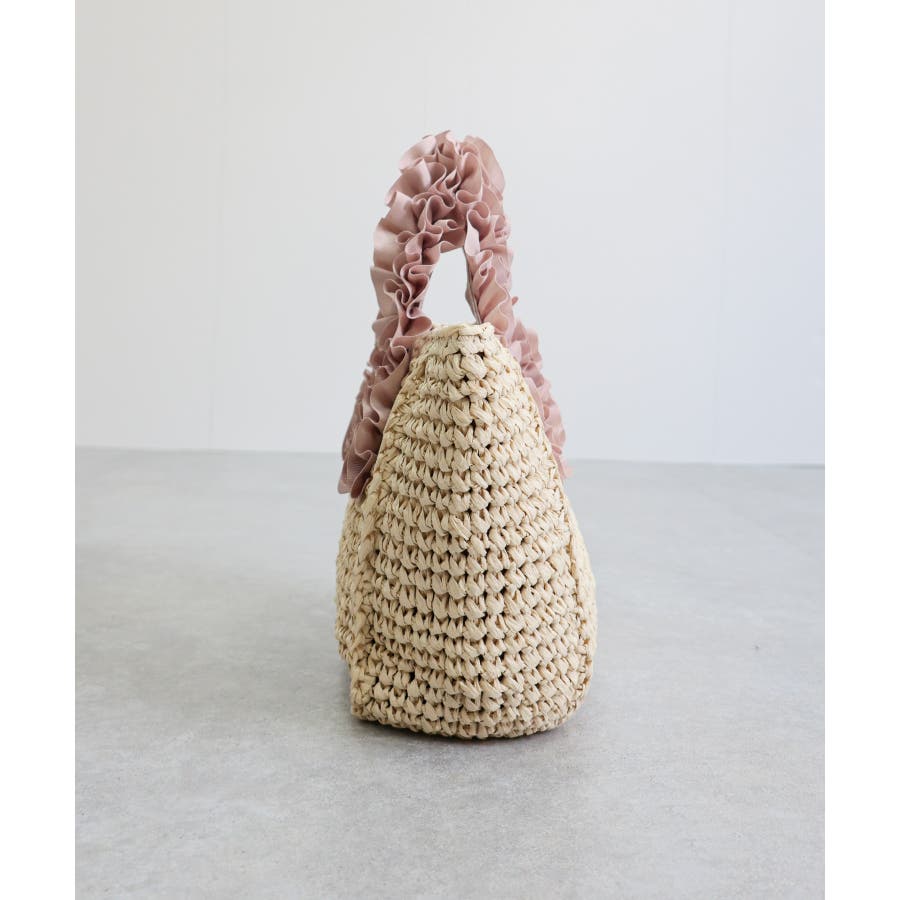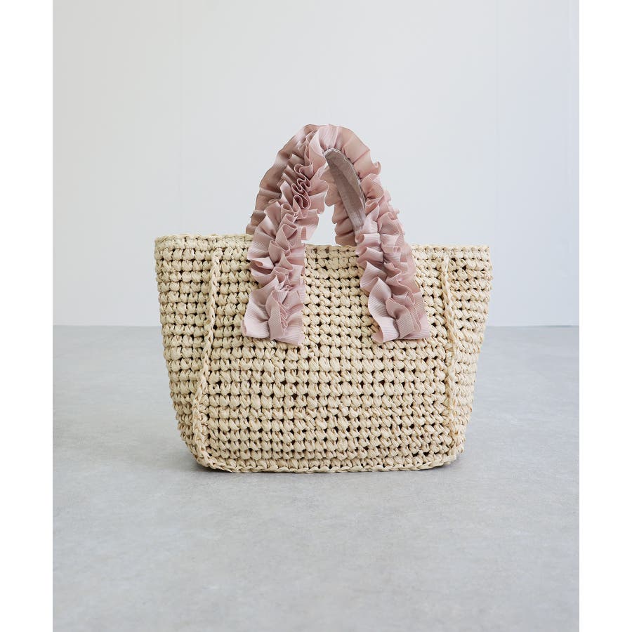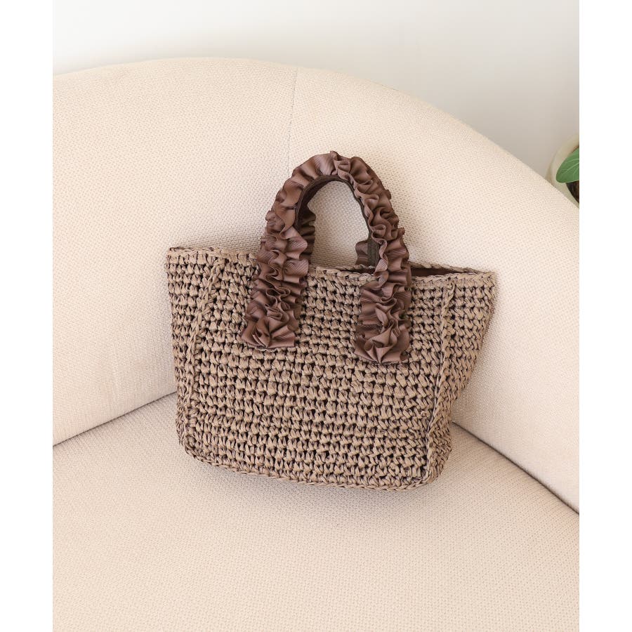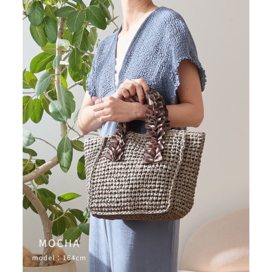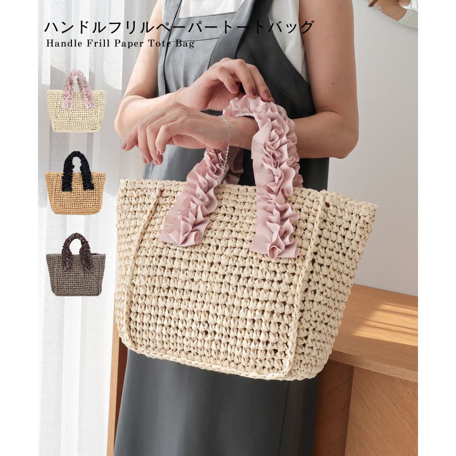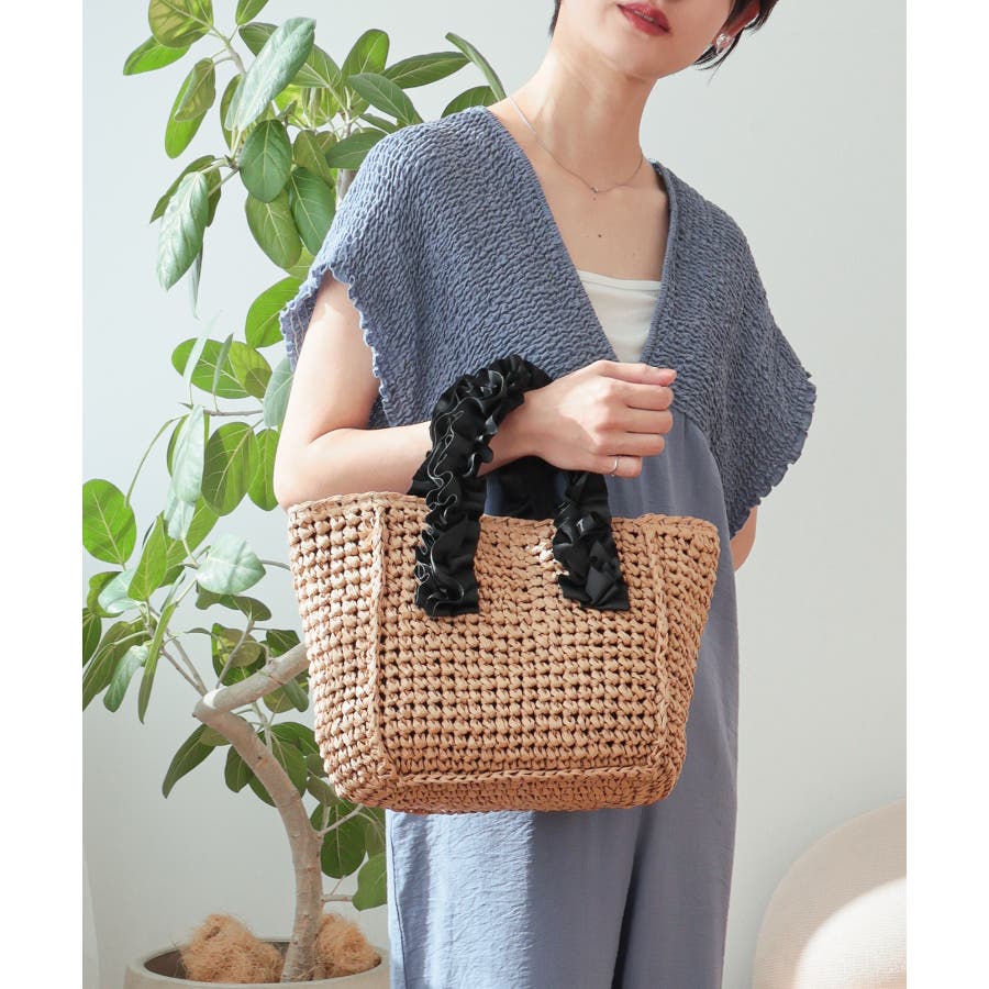 【カゴバッグ/リゾート/プレゼント】ハンドルフリルペーパートートバッグ