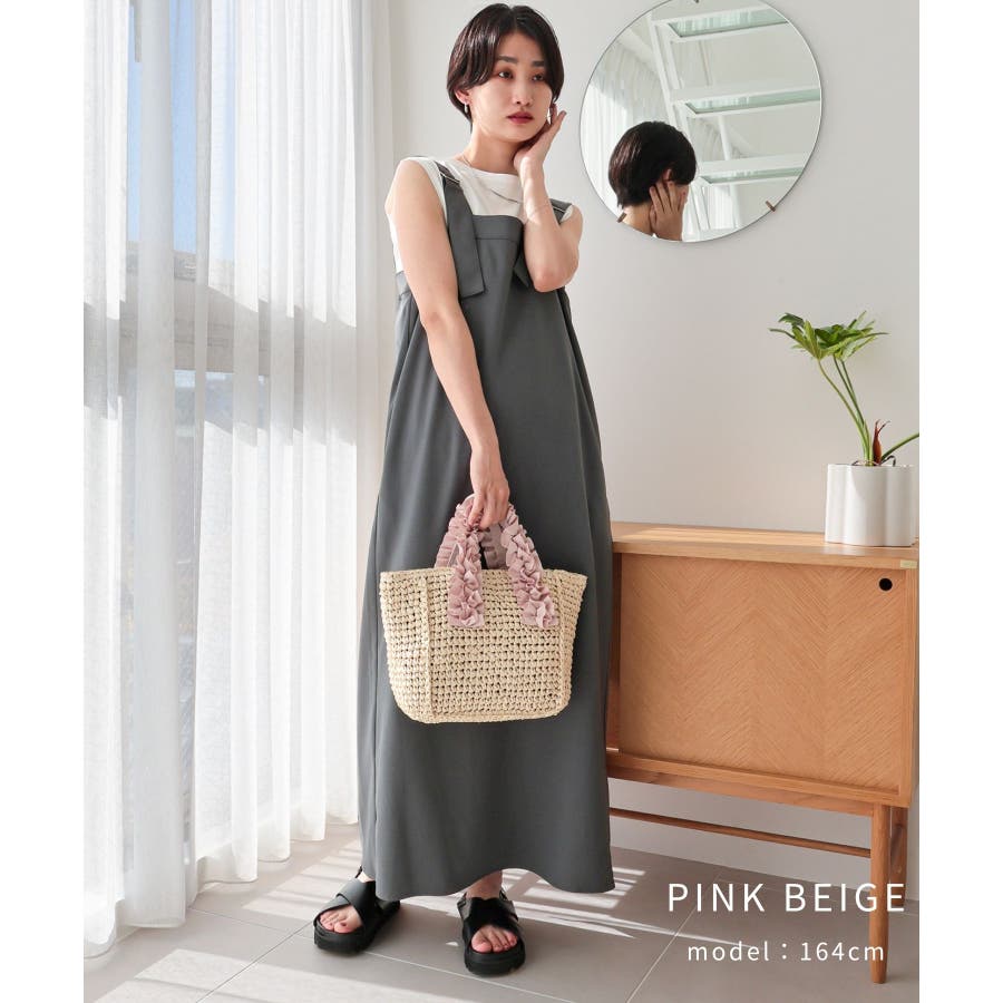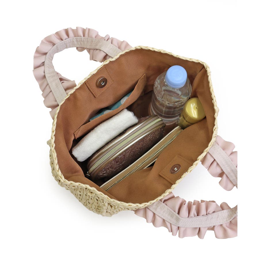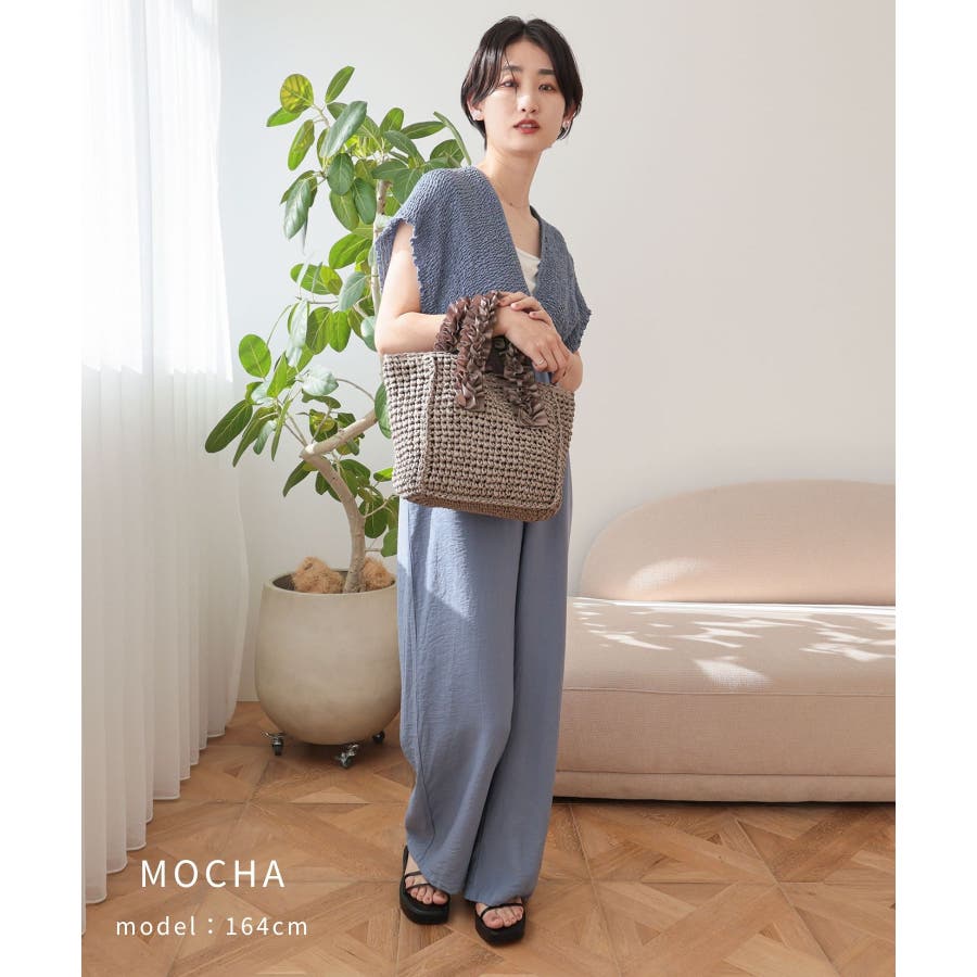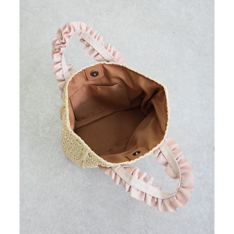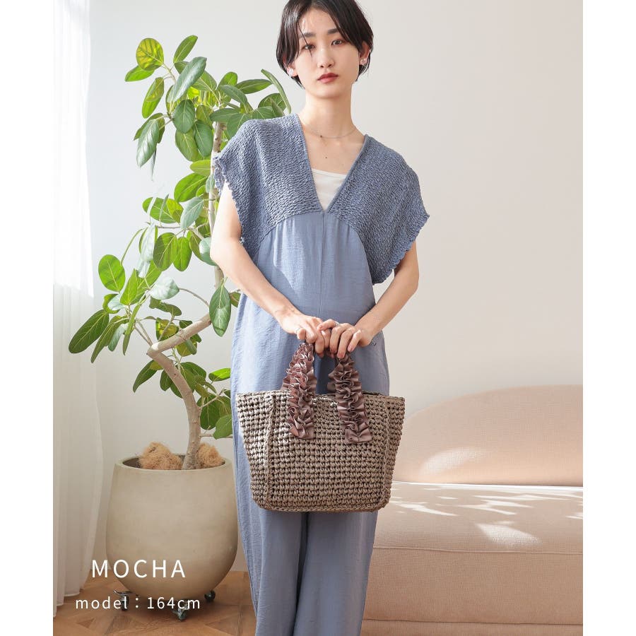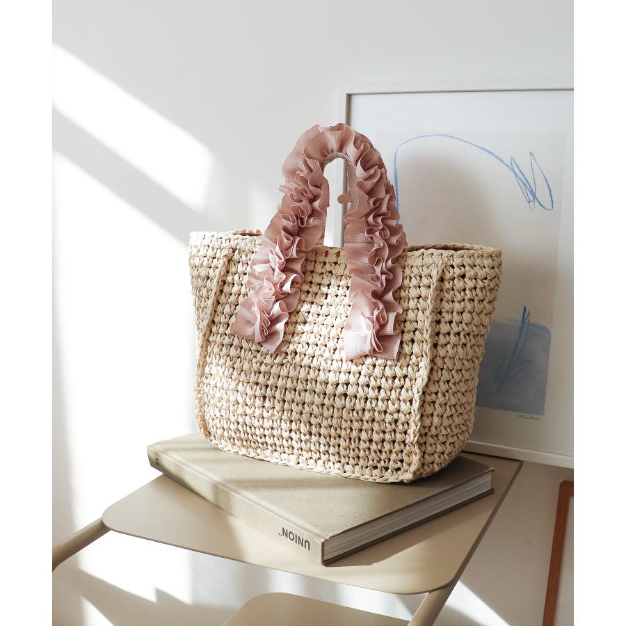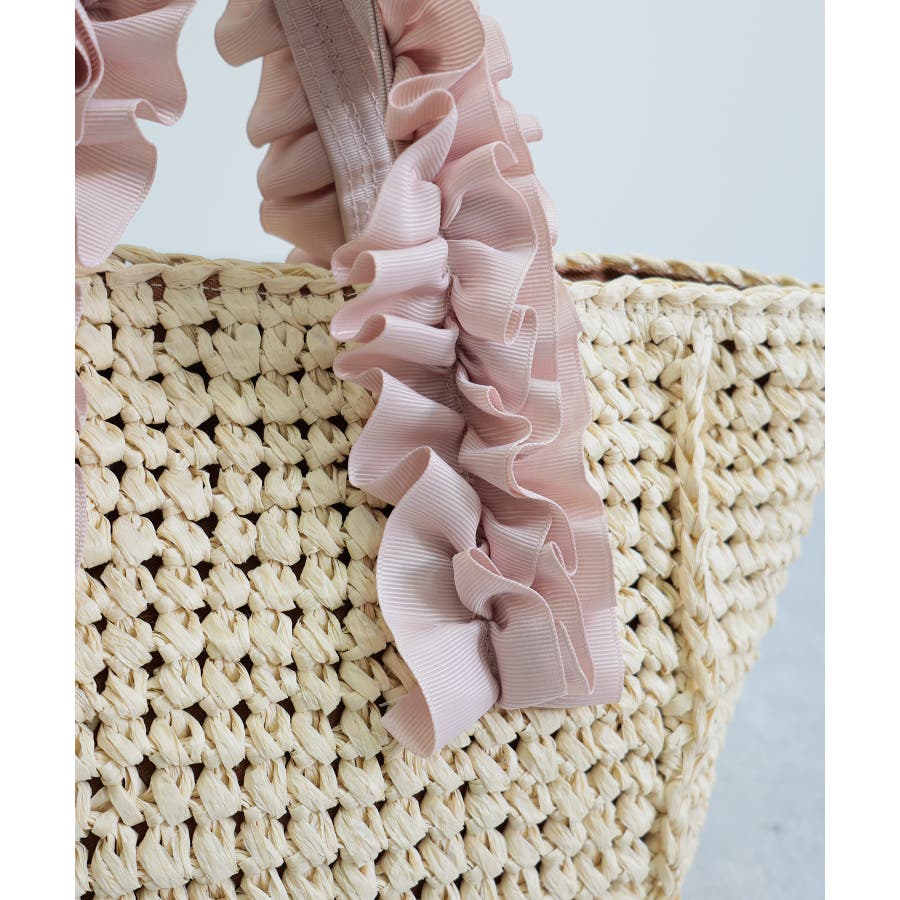 【カゴバッグ/リゾート/プレゼント】ハンドルフリルペーパートートバッグ