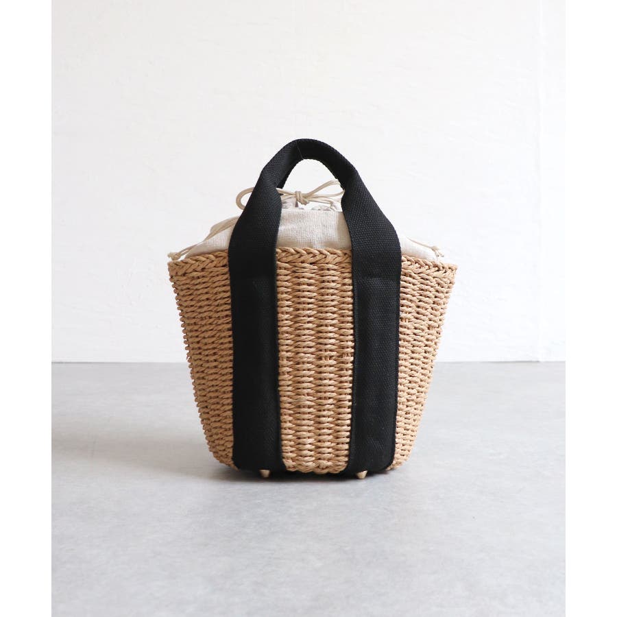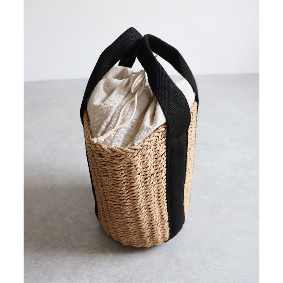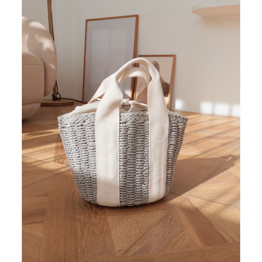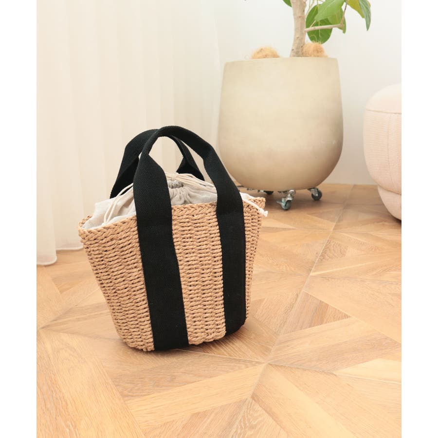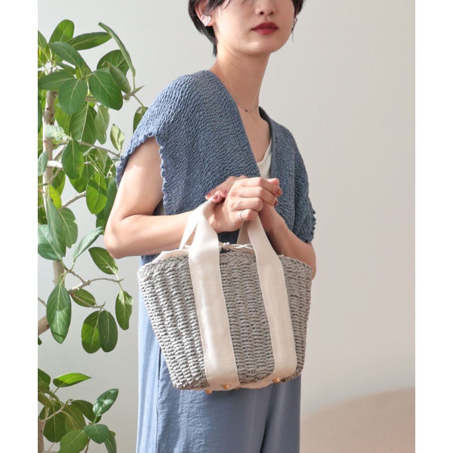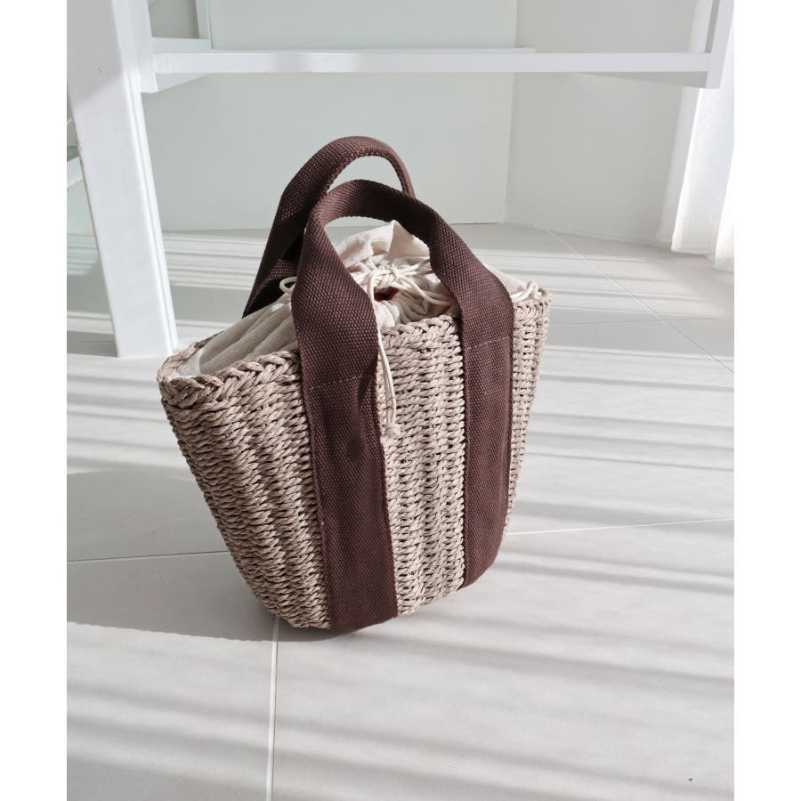 【カゴバッグ/リゾート/軽量】口元巾着ハンドルテープペーパートートバッグ