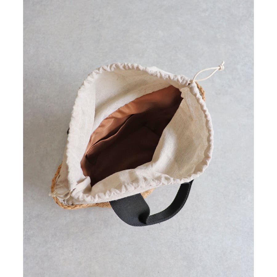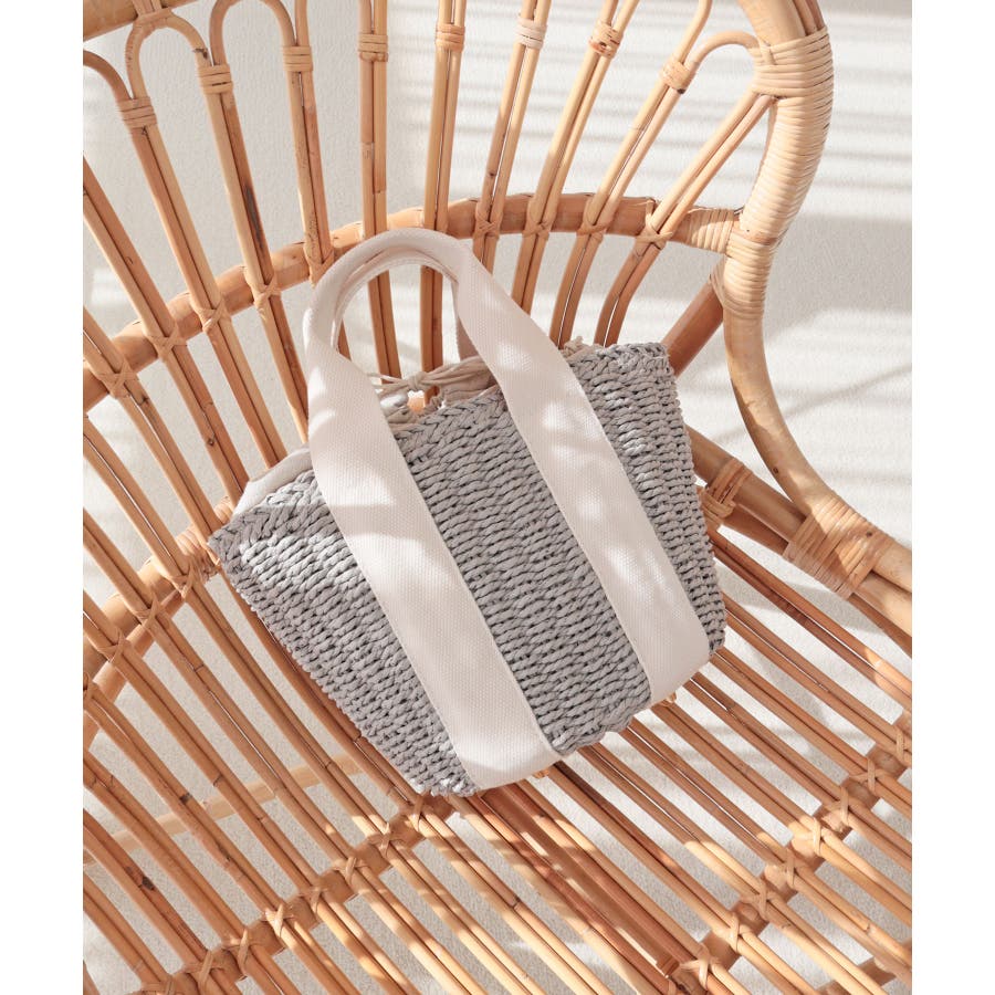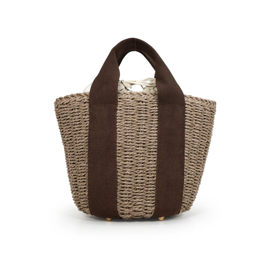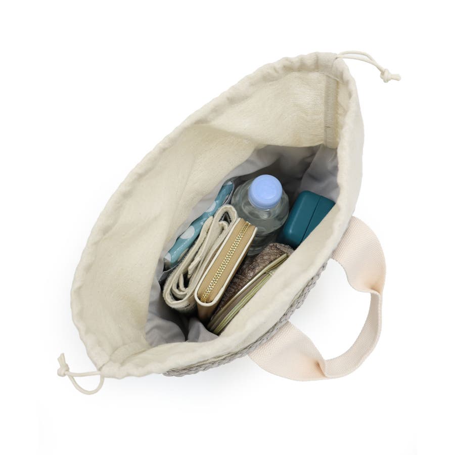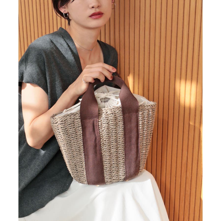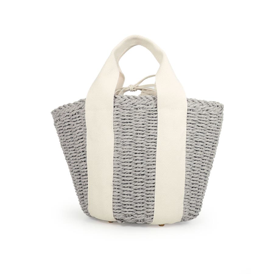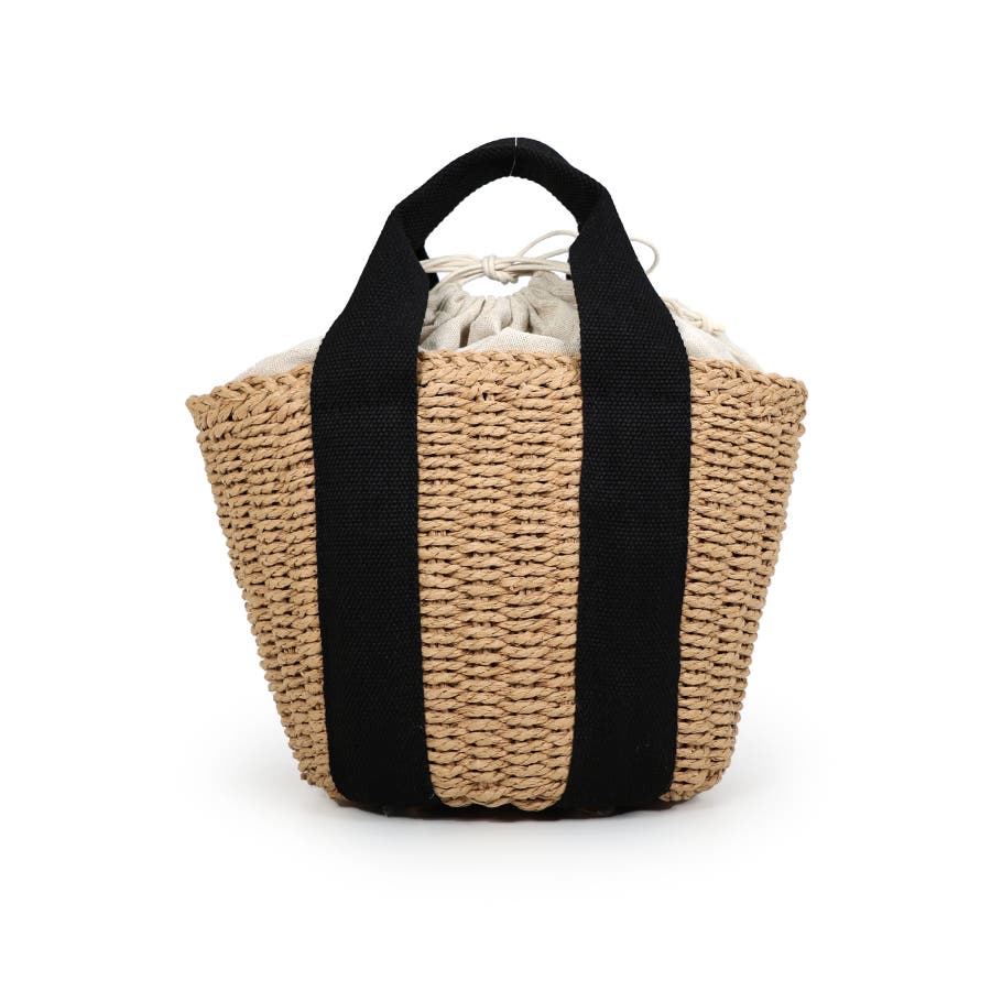【カゴバッグ/リゾート/軽量】口元巾着ハンドルテープペーパートートバッグ