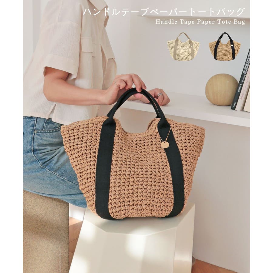 【カゴバッグ/リゾート/定番】ハンドルテープペーパートートバッグ