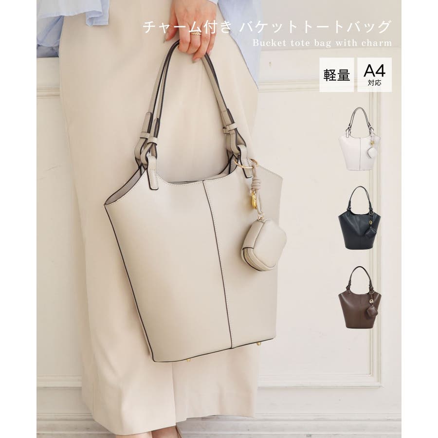 【オールシーズン/A4/通勤通学】チャーム付き バケットトートバッグ
