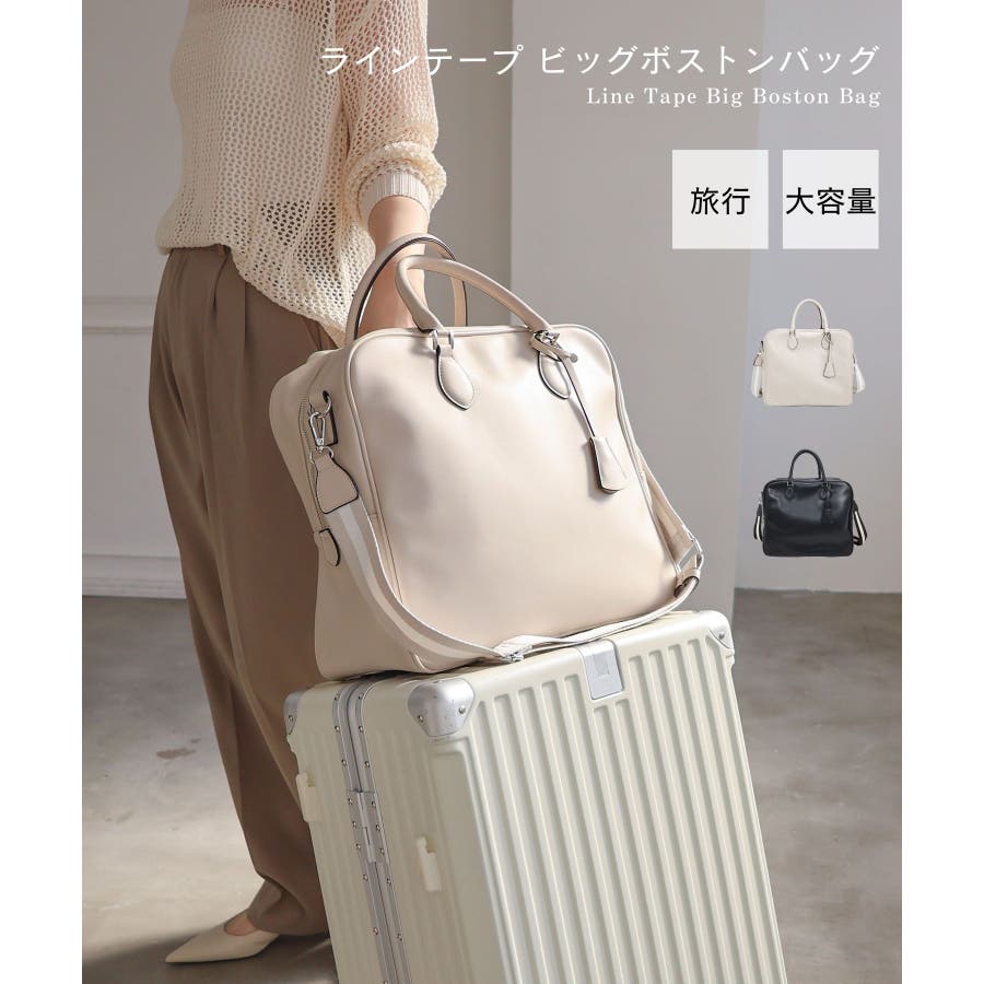 【オールシーズン/旅行/大容量】ラインテープ ビッグボストンバッグ