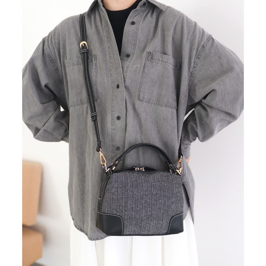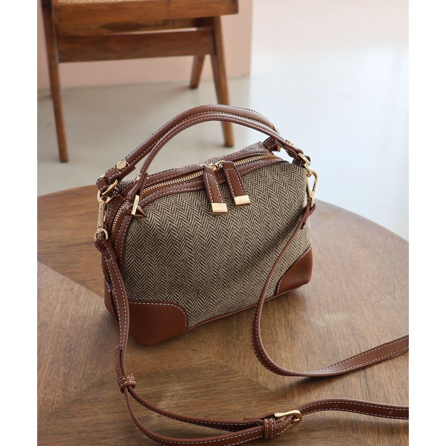 ・ヘリンボーン柄の生地と配色ステッチでクラシックな雰囲気に仕上げました。