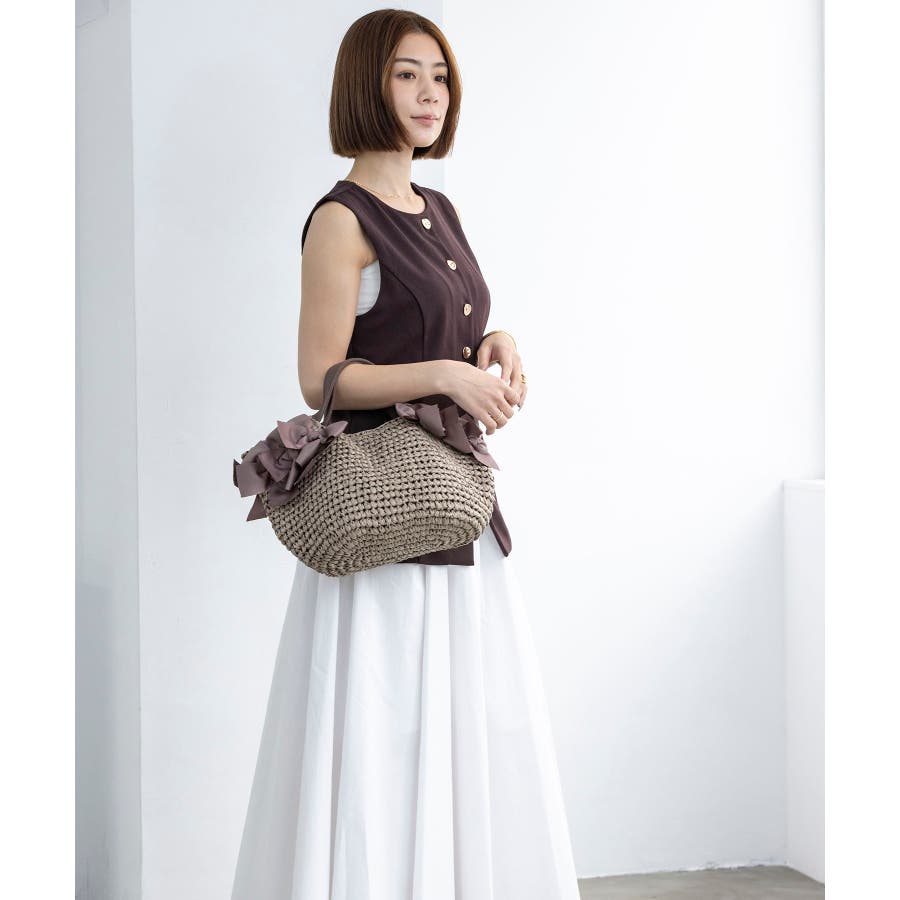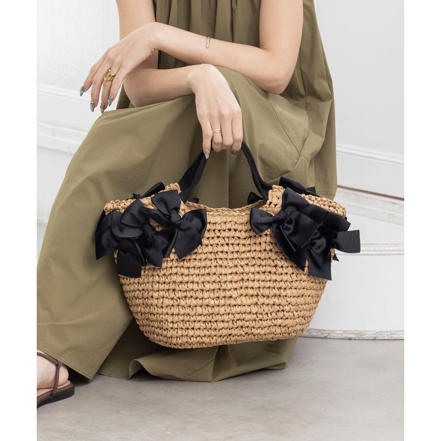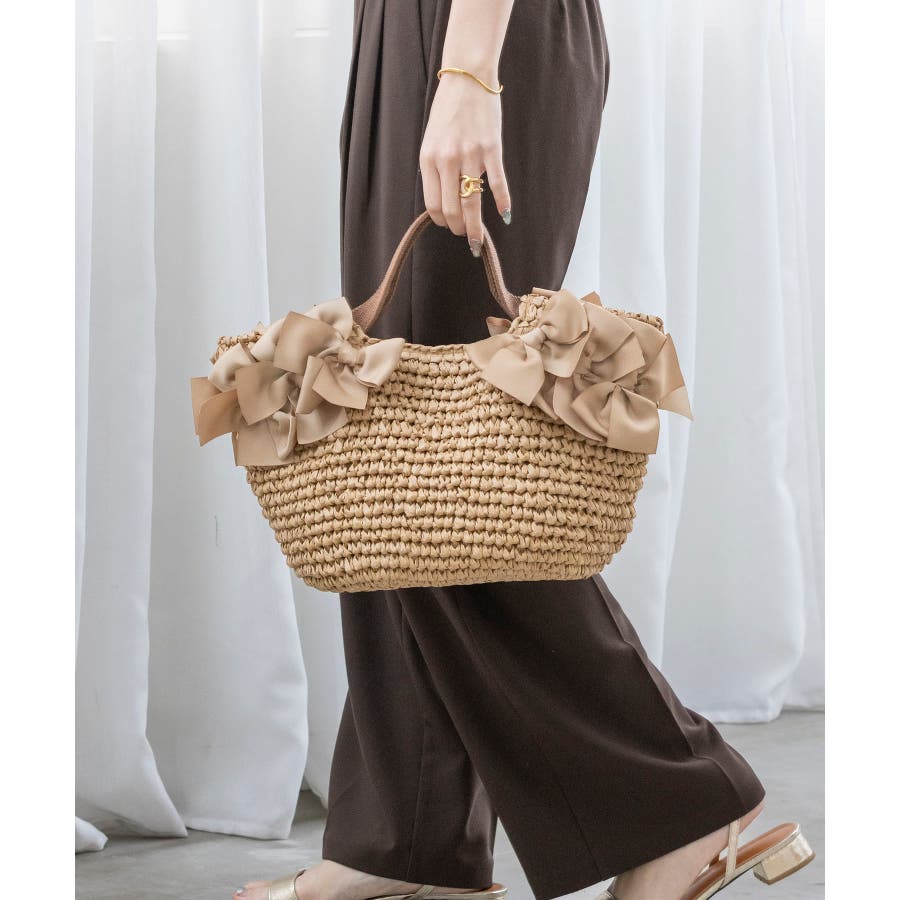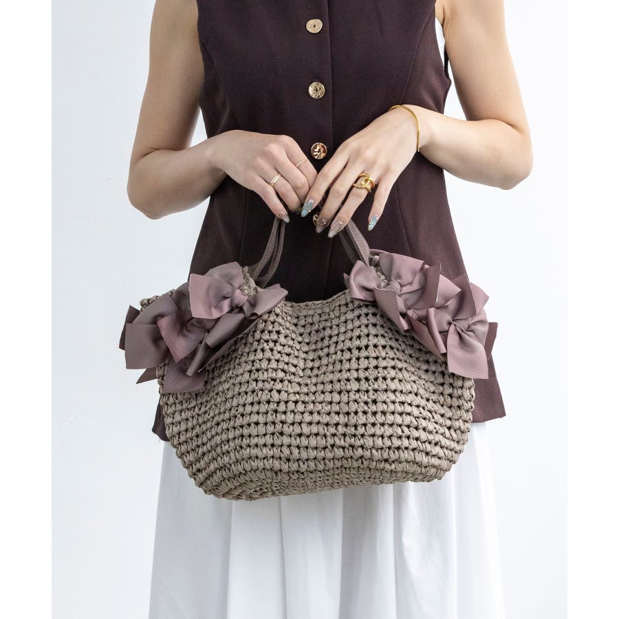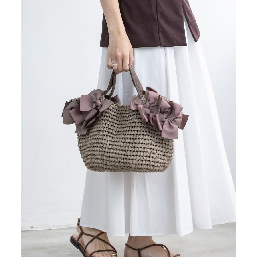 【デイリー/カゴバッグ/ミディアムサイズ】サイドリボンペーパートートバッグ
