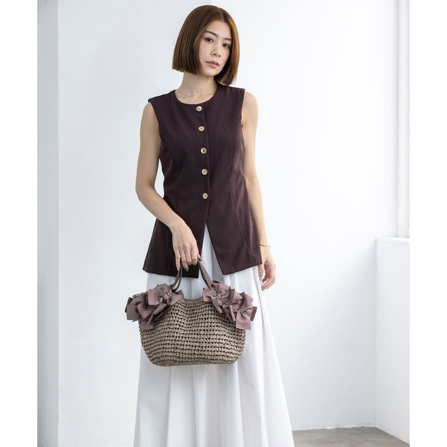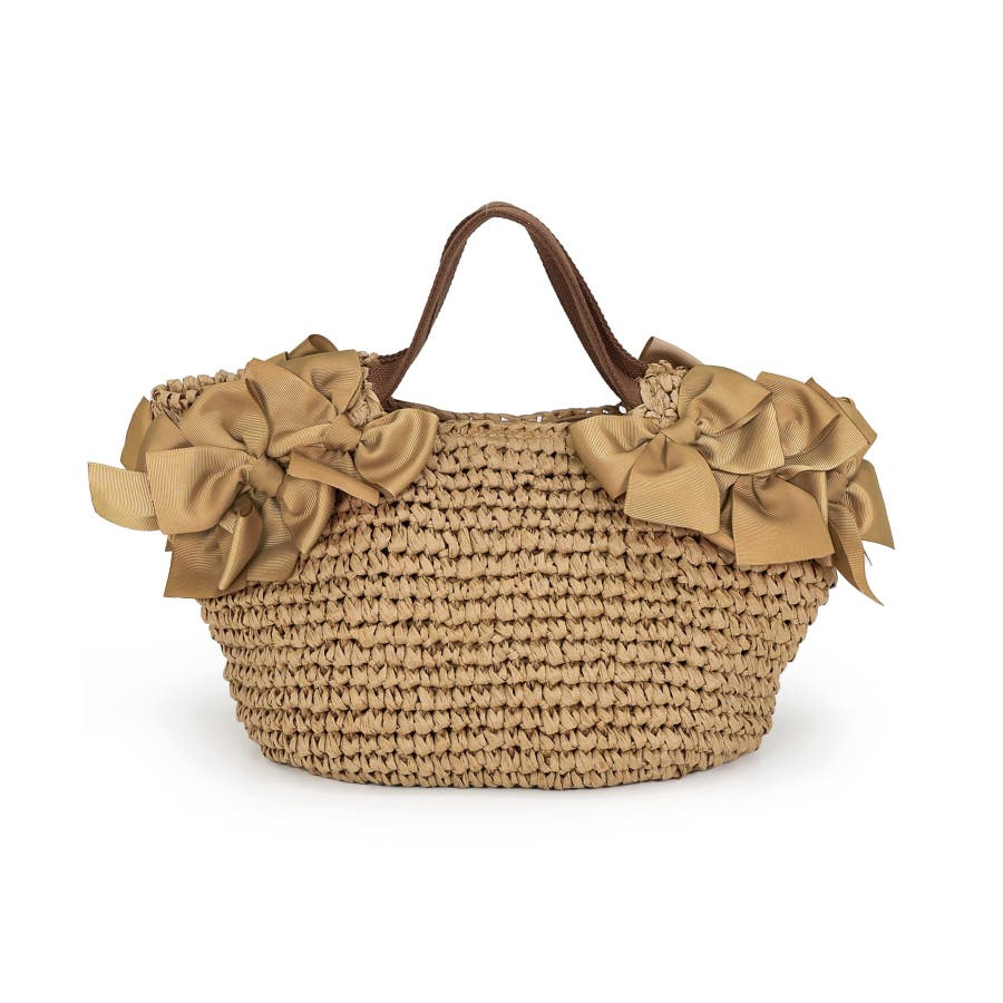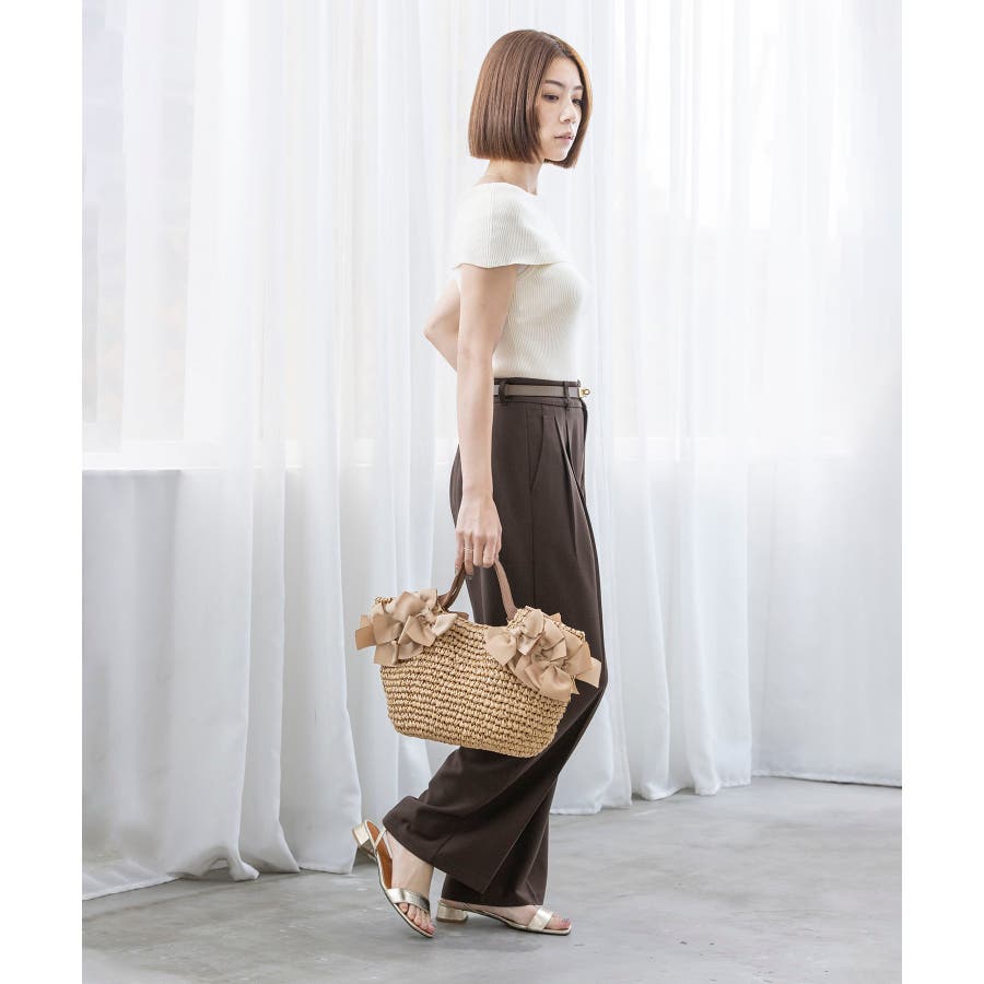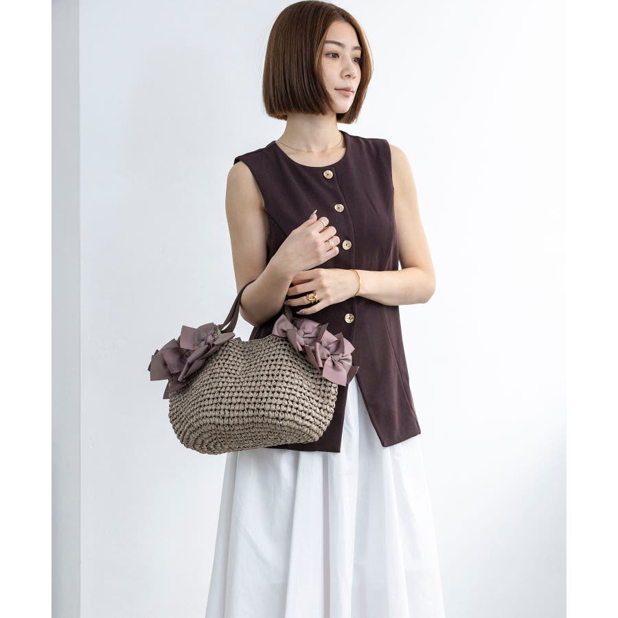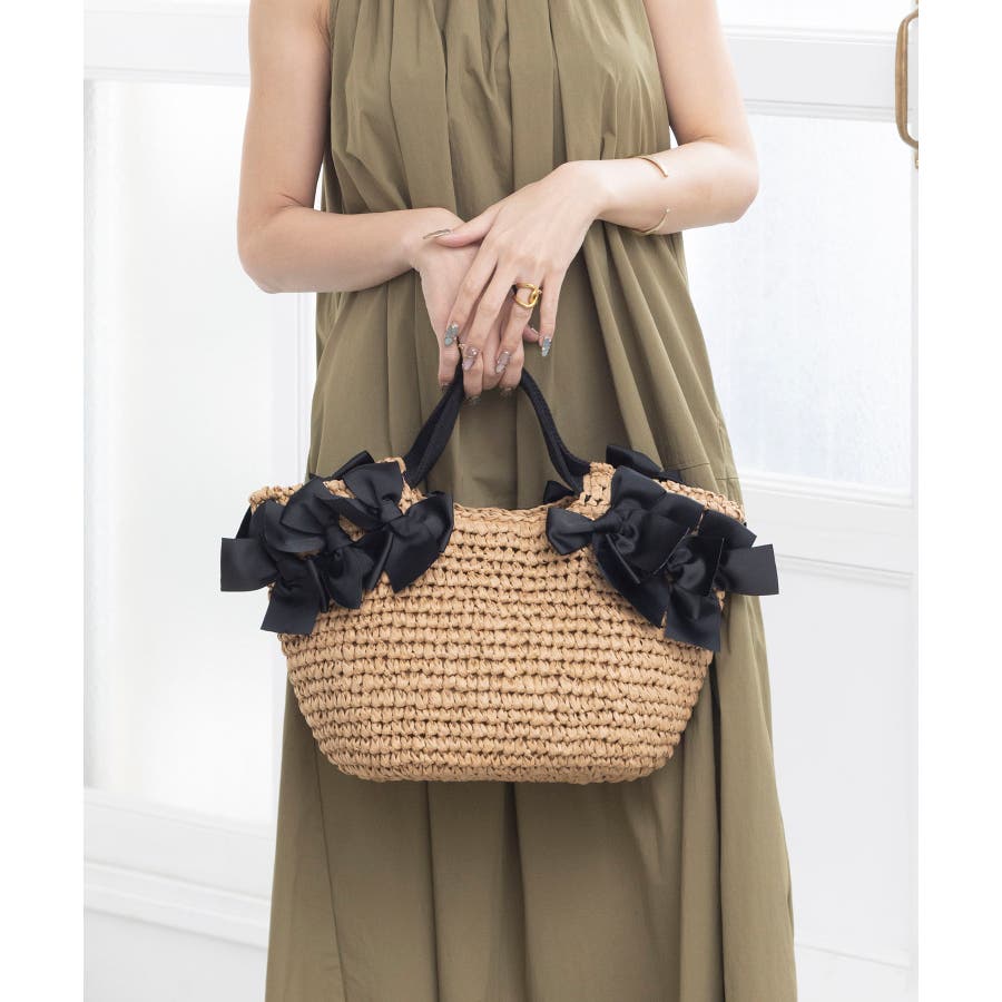 【デイリー/カゴバッグ/ミディアムサイズ】サイドリボンペーパートートバッグ