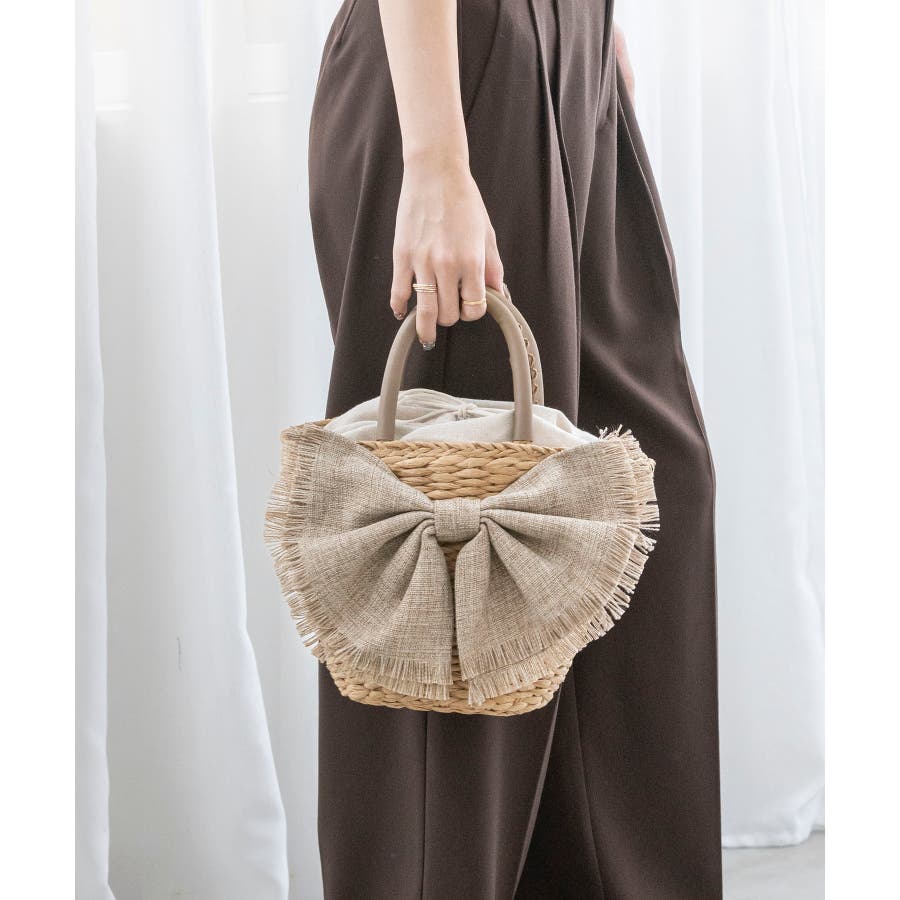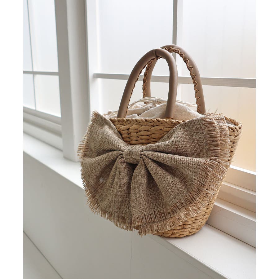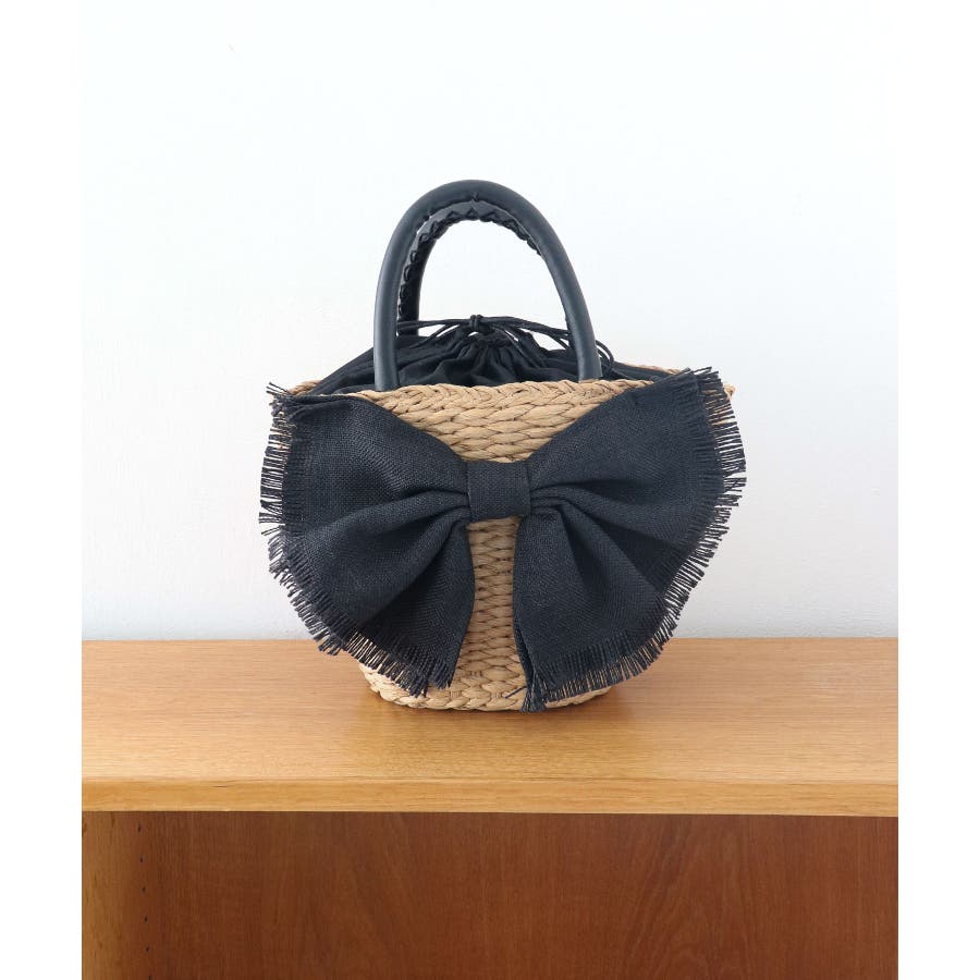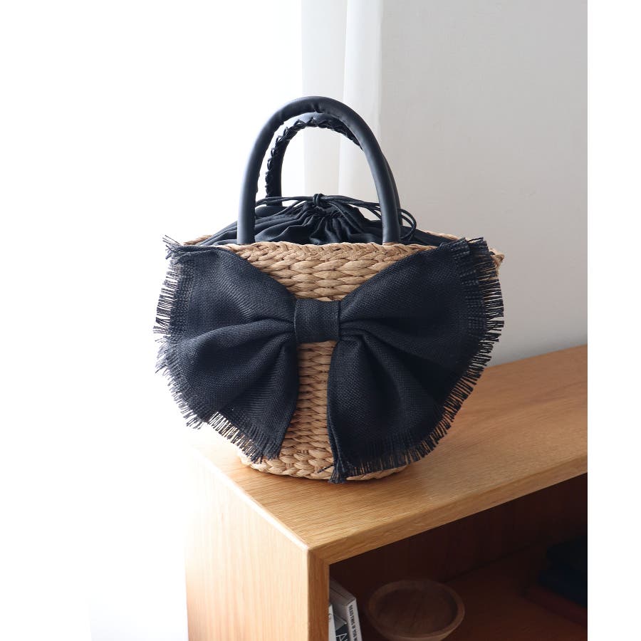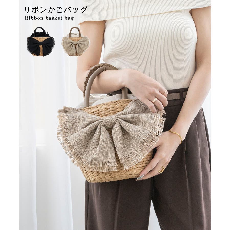 【デイリー/カゴバッグ/ミディアムサイズ】リボンかごバッグ