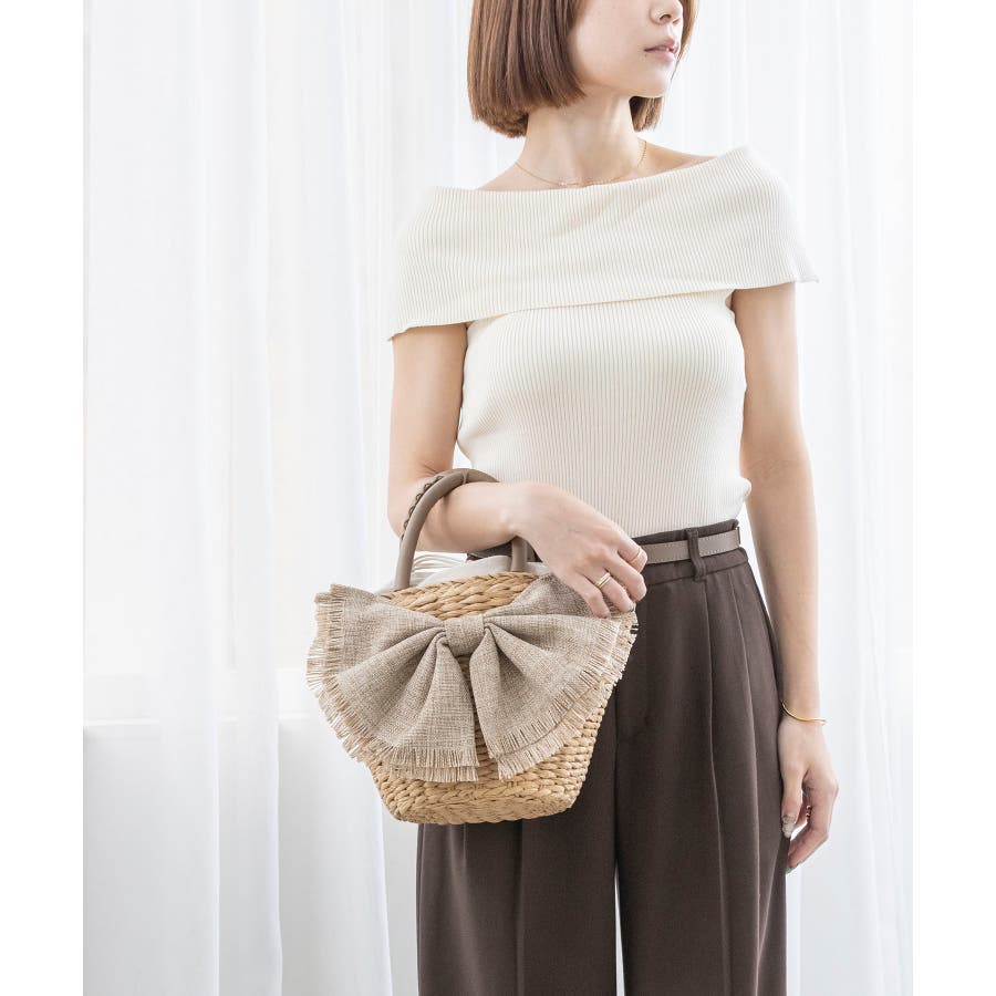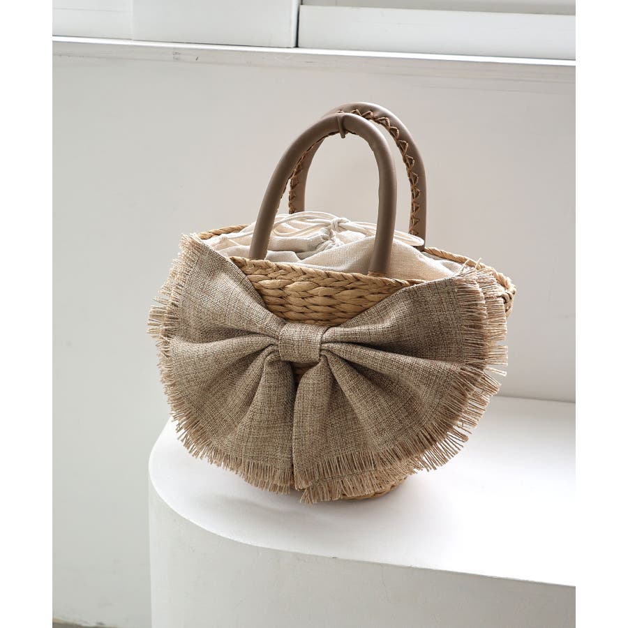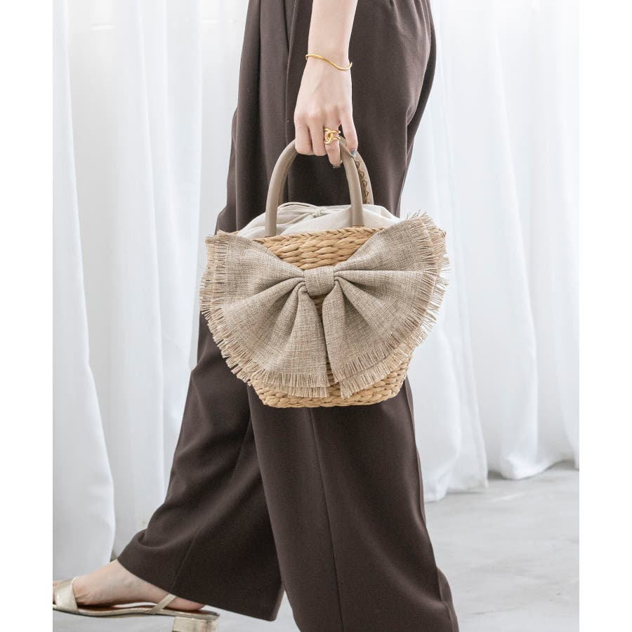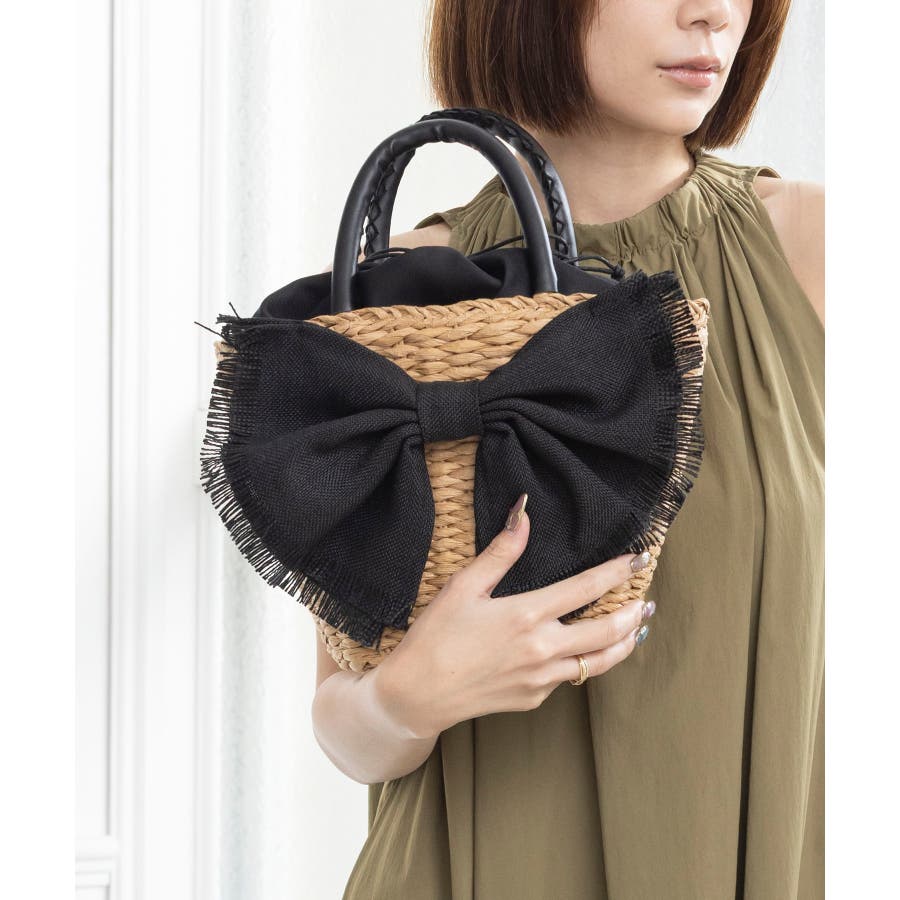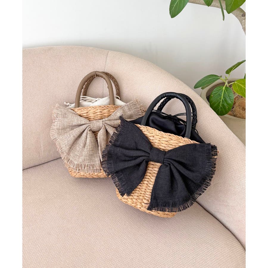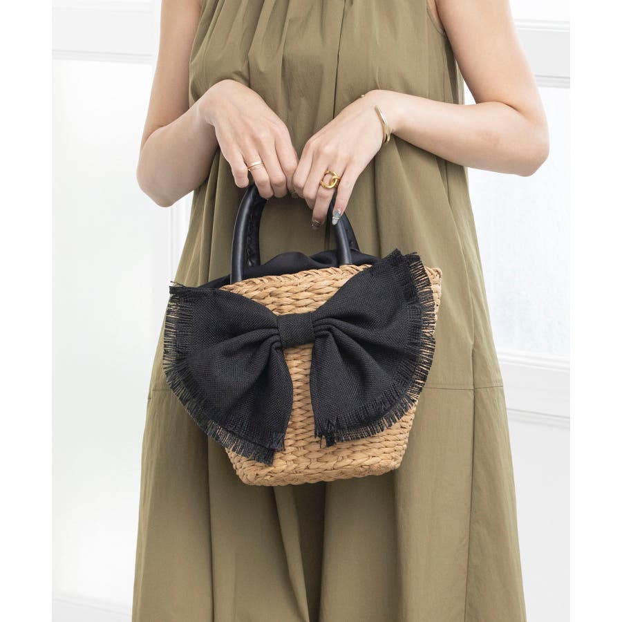 【デイリー/カゴバッグ/ミディアムサイズ】リボンかごバッグ