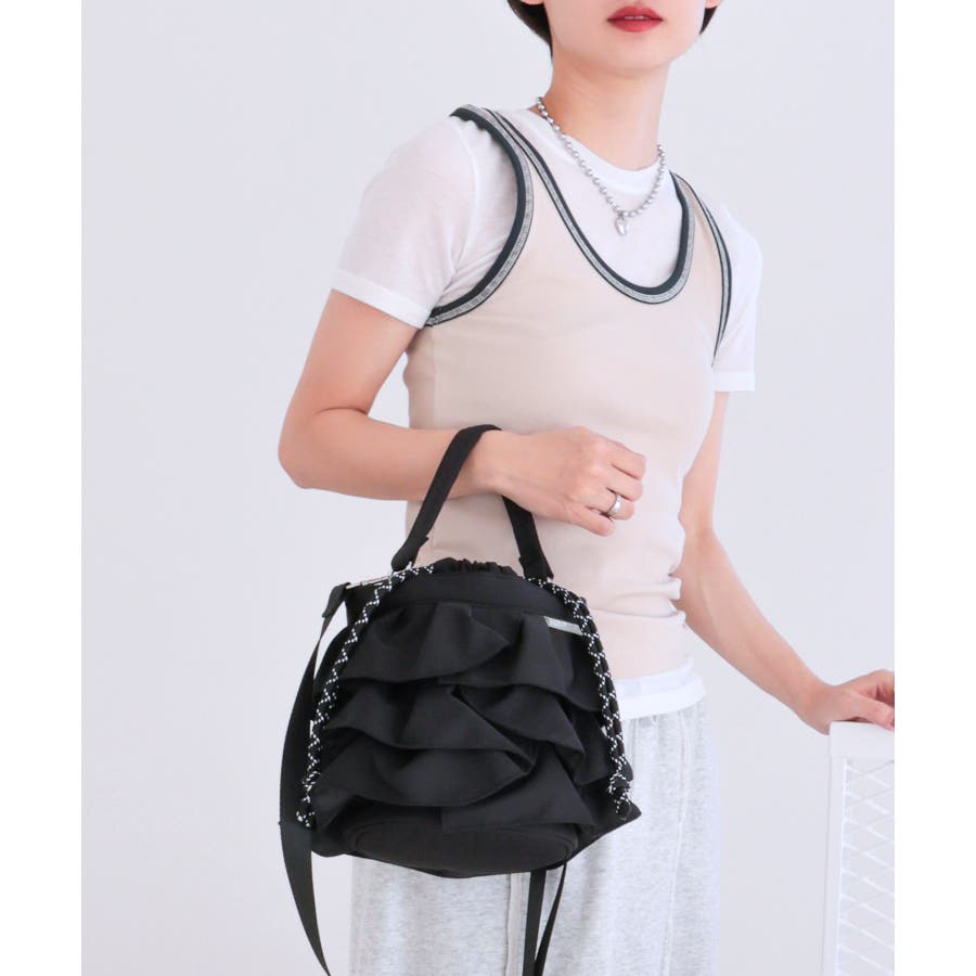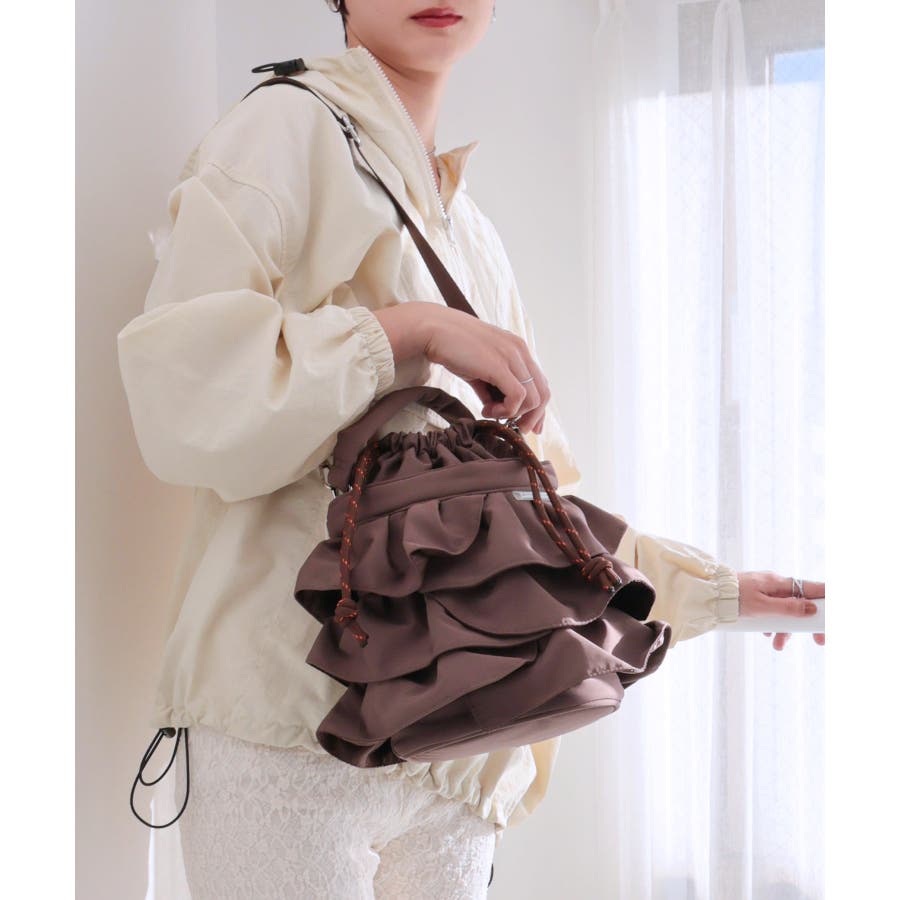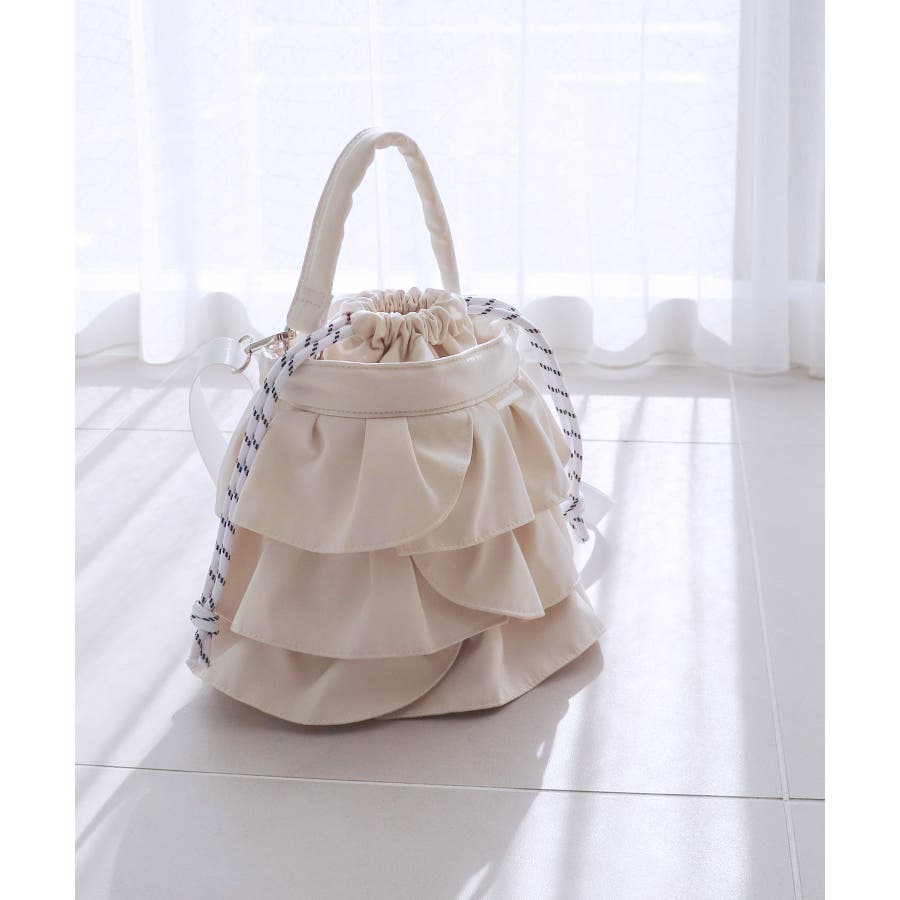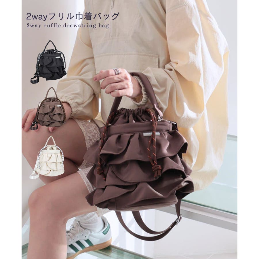 【2way/デイリー/オールシーズン】2wayフリル巾着バッグ