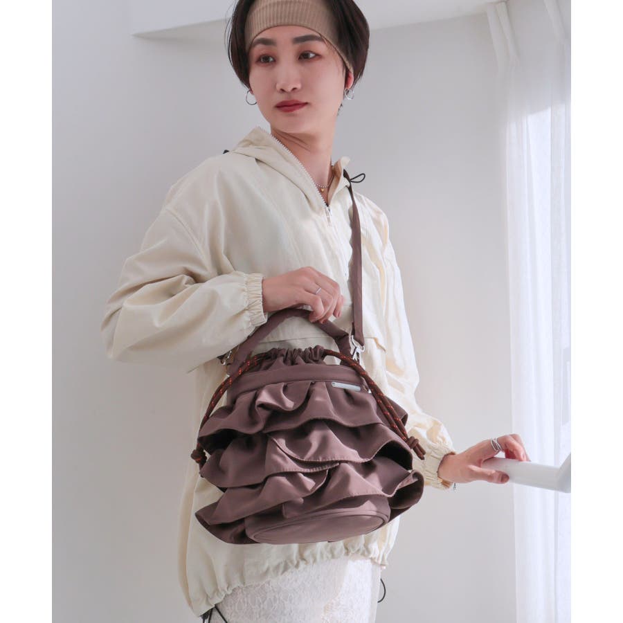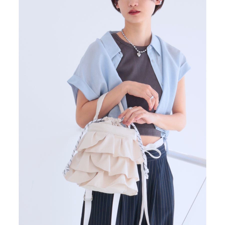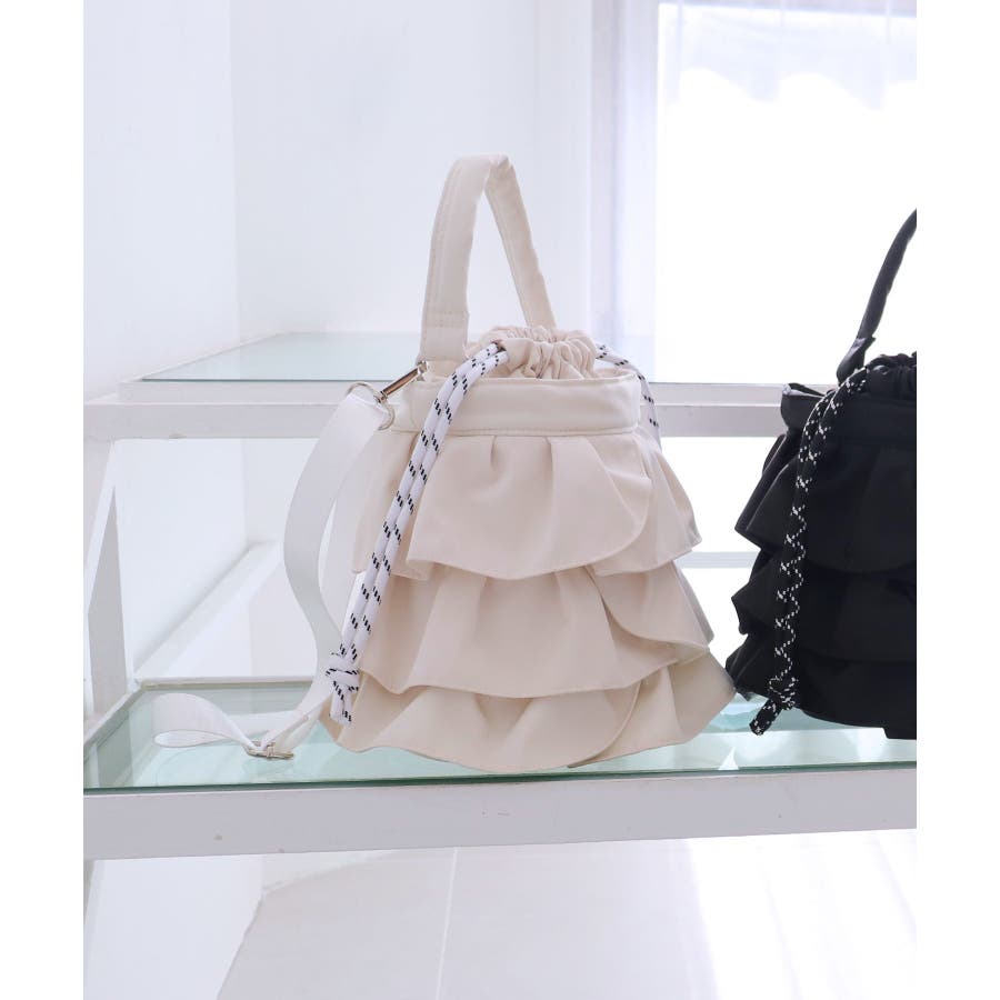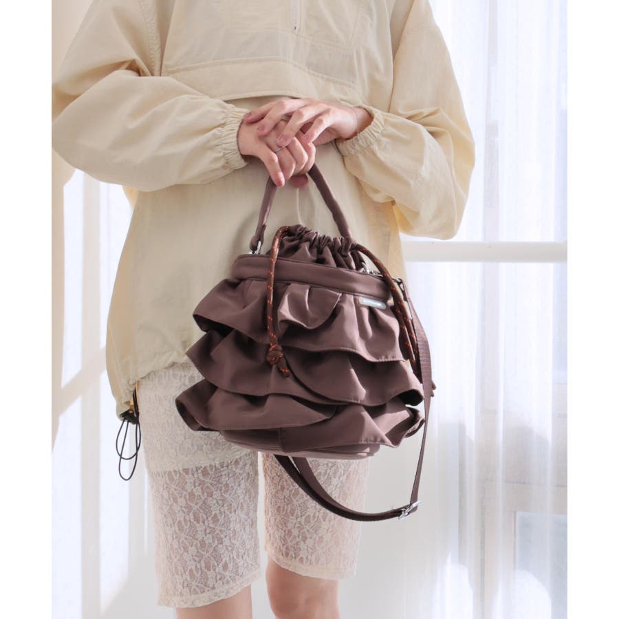 【2way/デイリー/オールシーズン】2wayフリル巾着バッグ