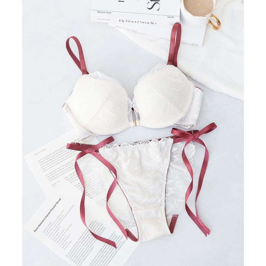 お揃いショーツのフェイクリボン×贅沢レースは、見た者の心を痺れさせる。