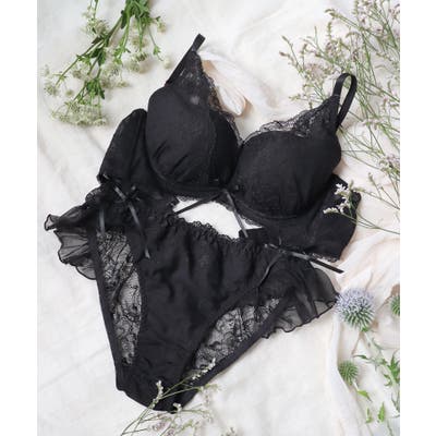ショーツはコード使いがおしゃれなフルバックタイプ、フリルがロマンティックなバックレースタイプの2種類からお選びいただけます。