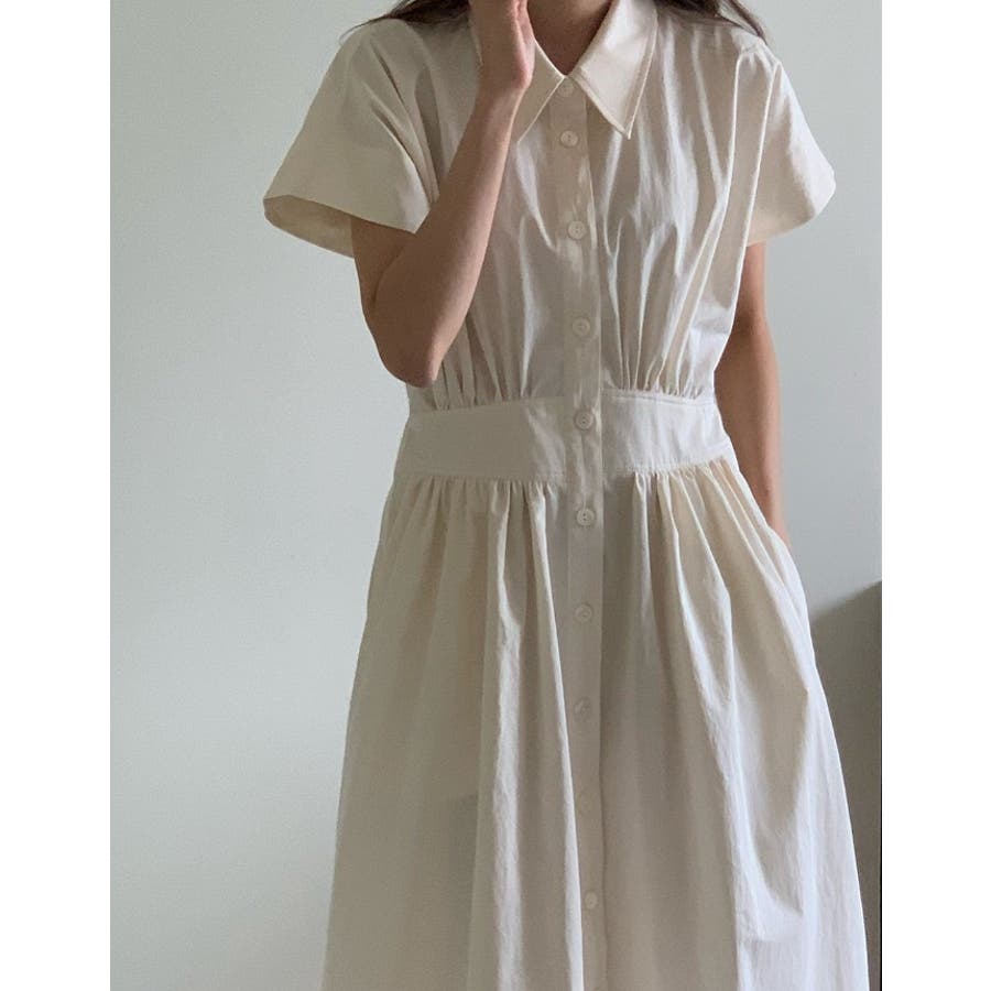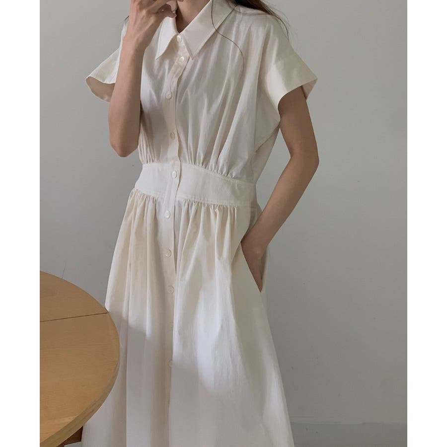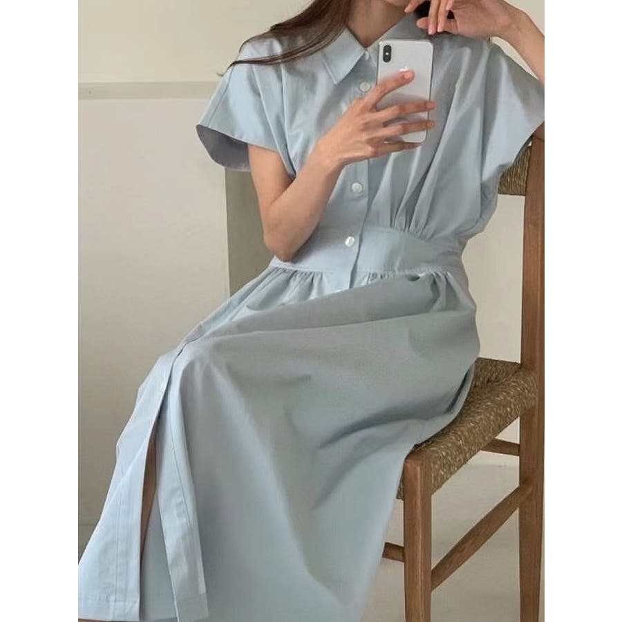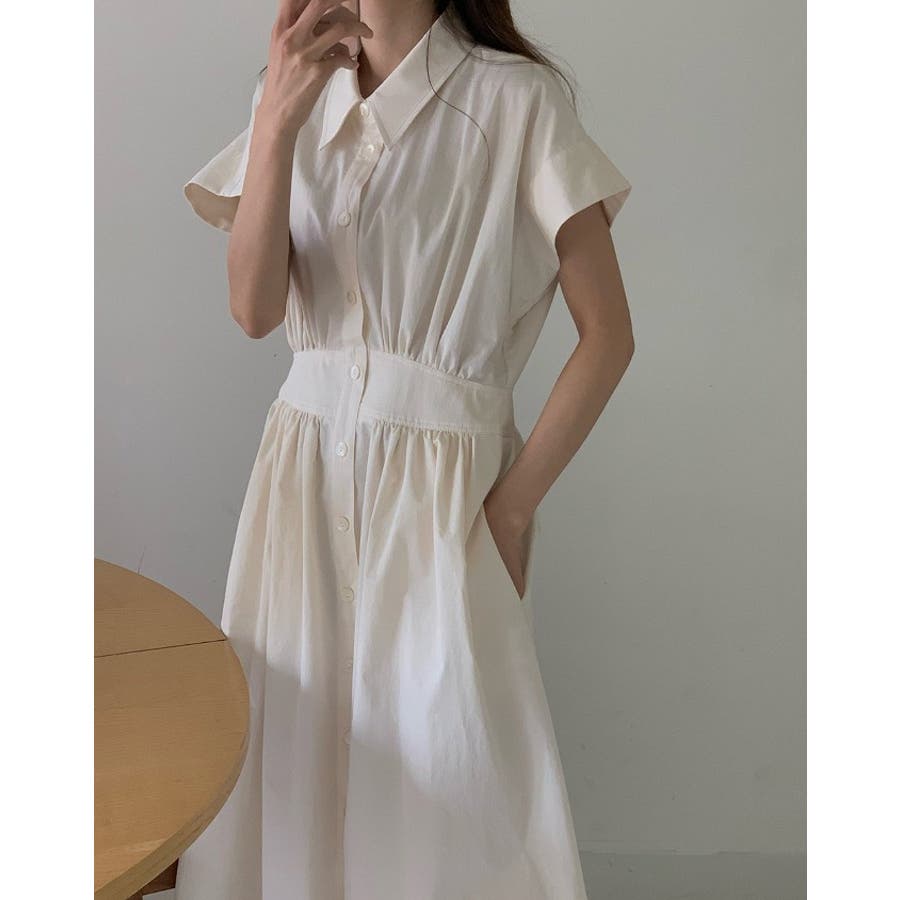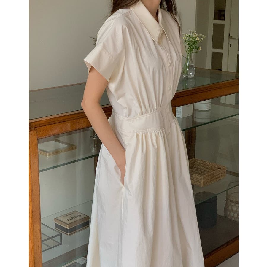 ポケット半袖襟付きシャツワンピース