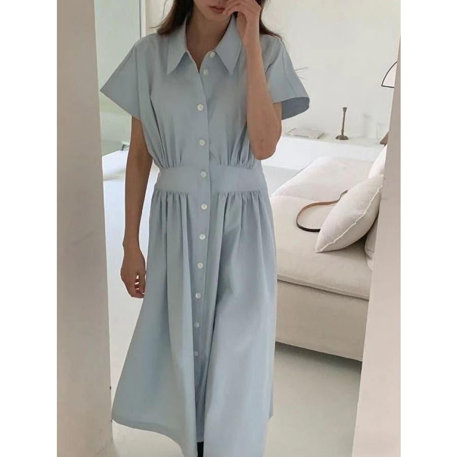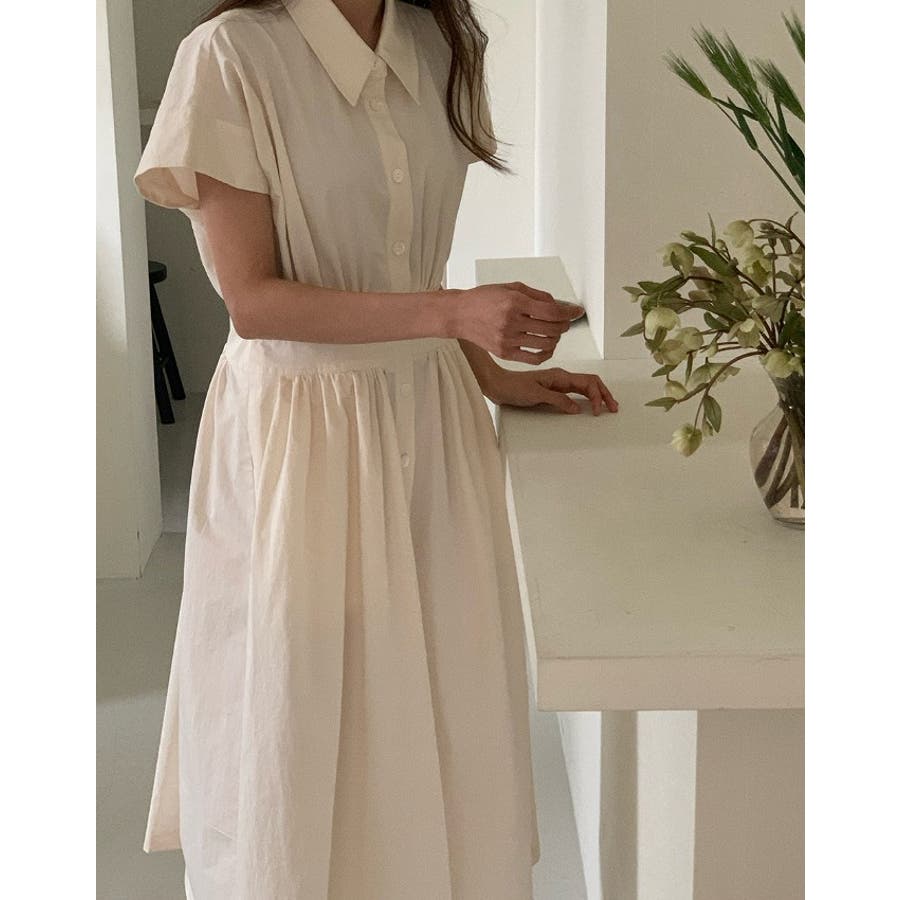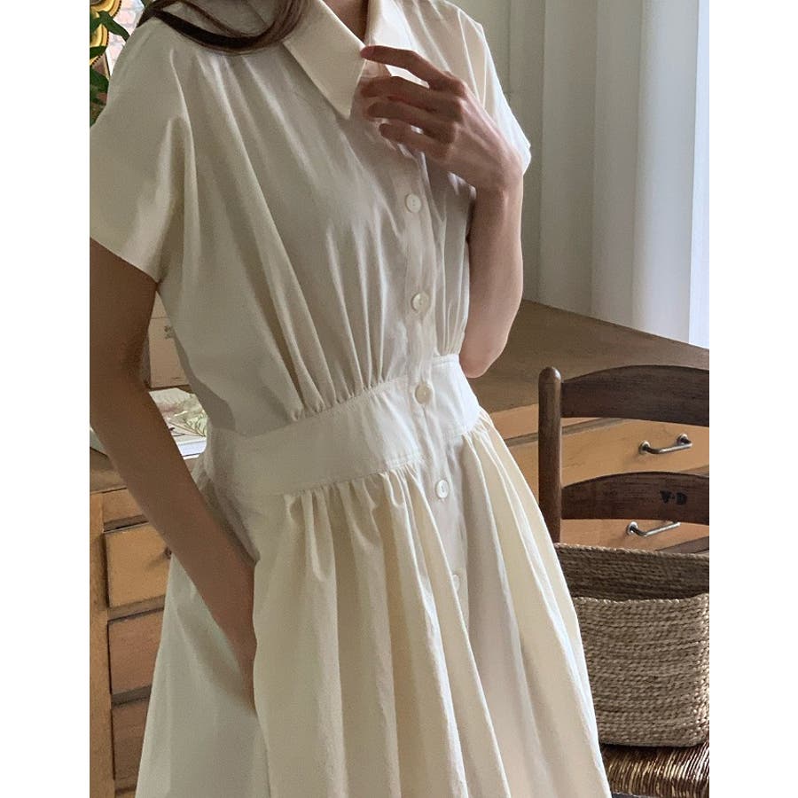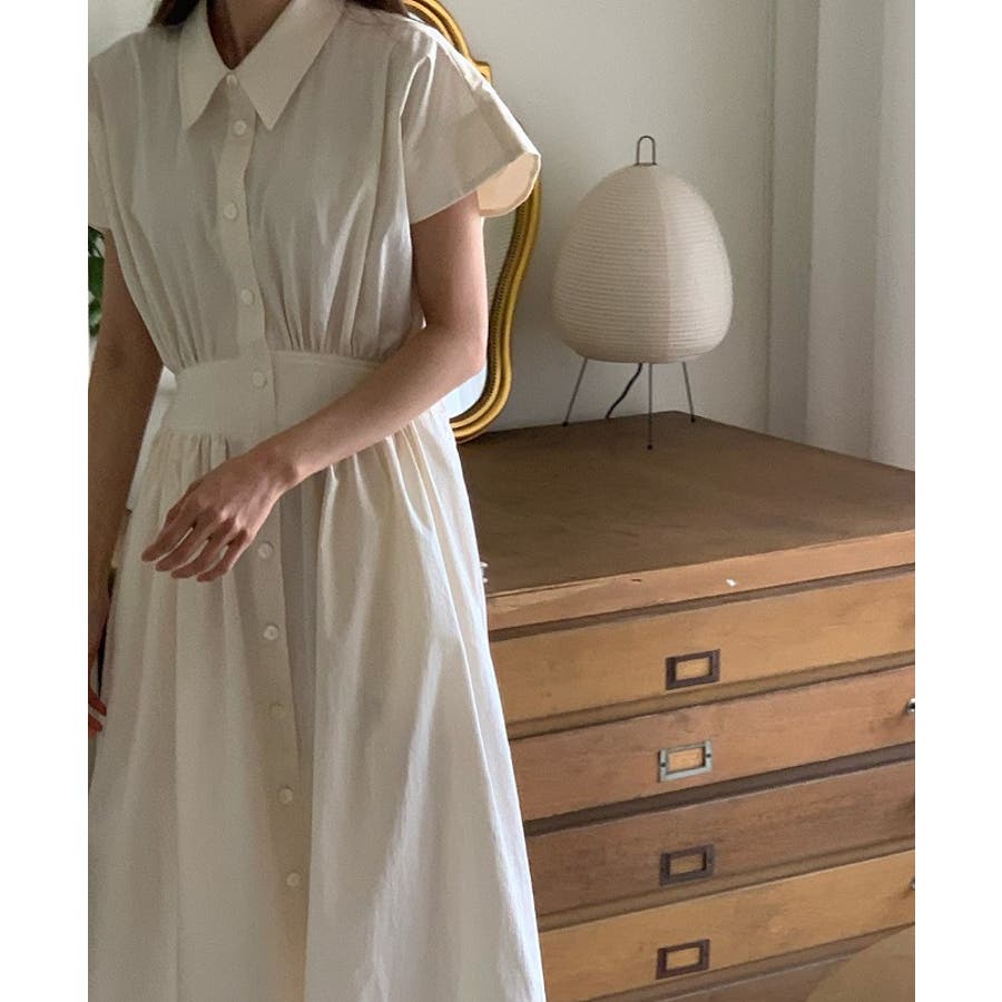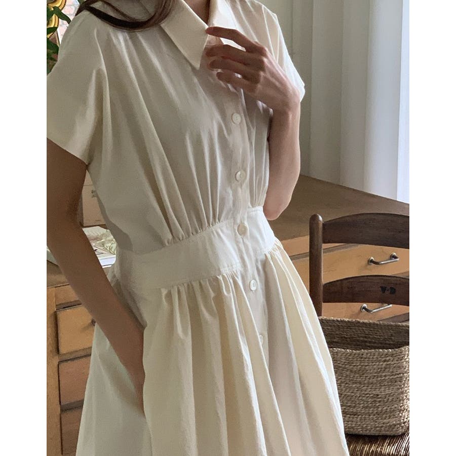 ポケット半袖襟付きシャツワンピース