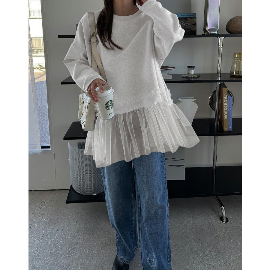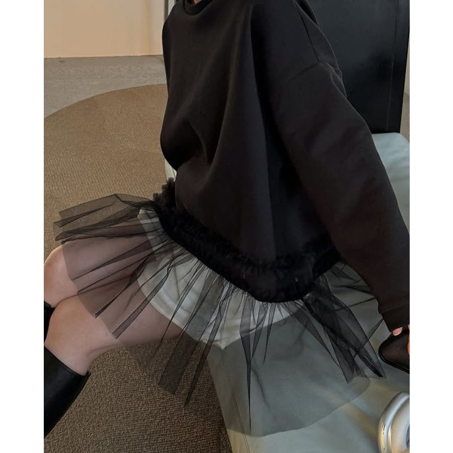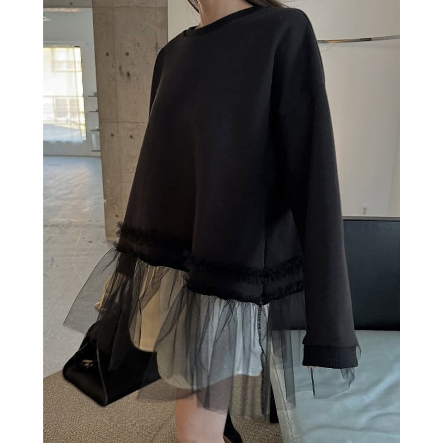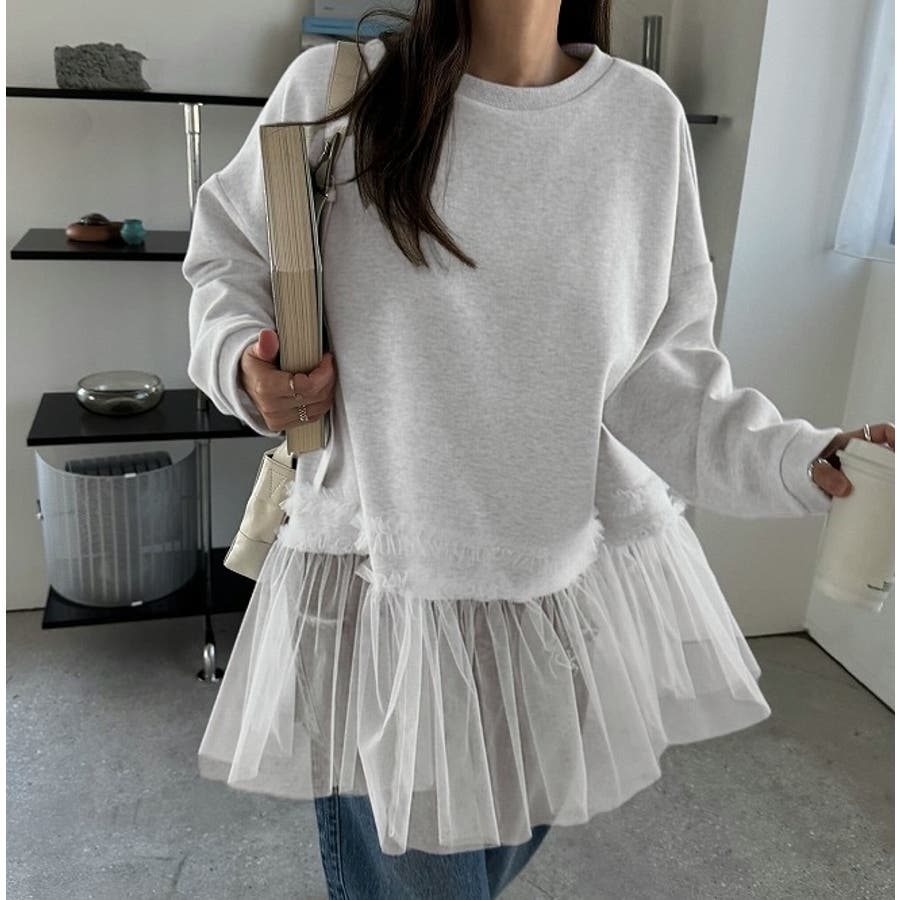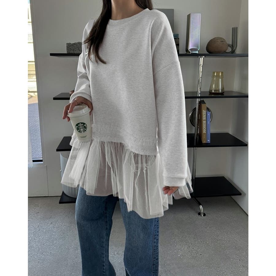 オーバーサイズクルーネックチュール付きスウェットトレーナー