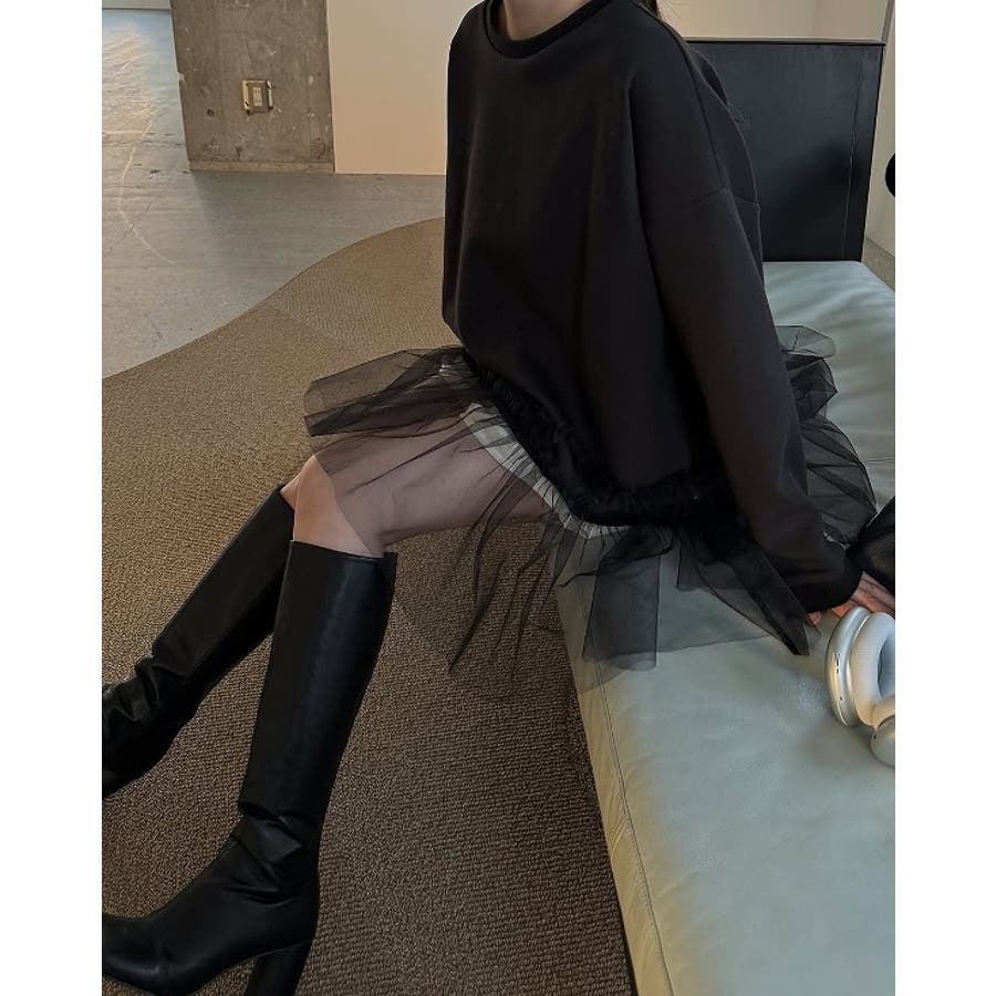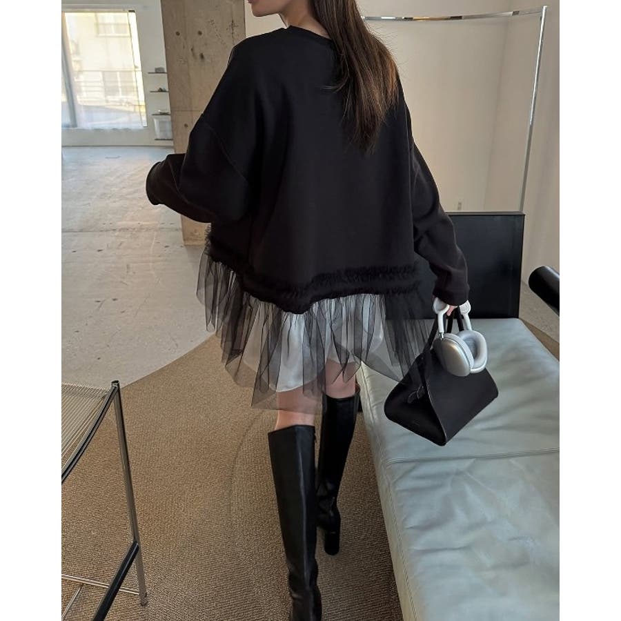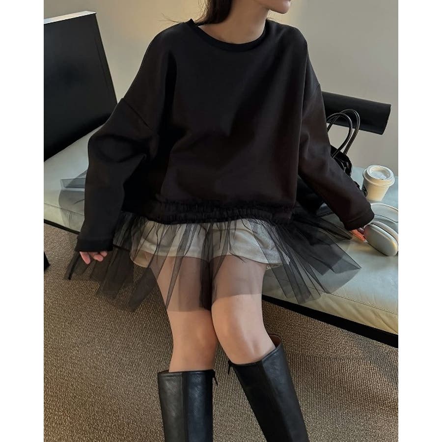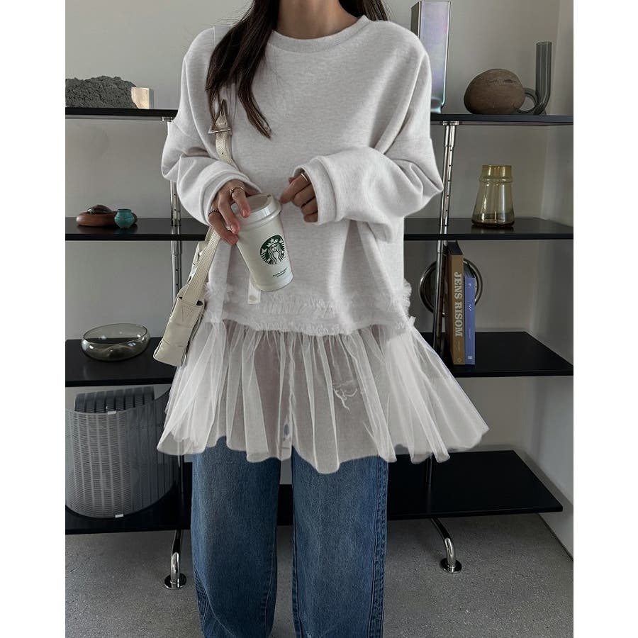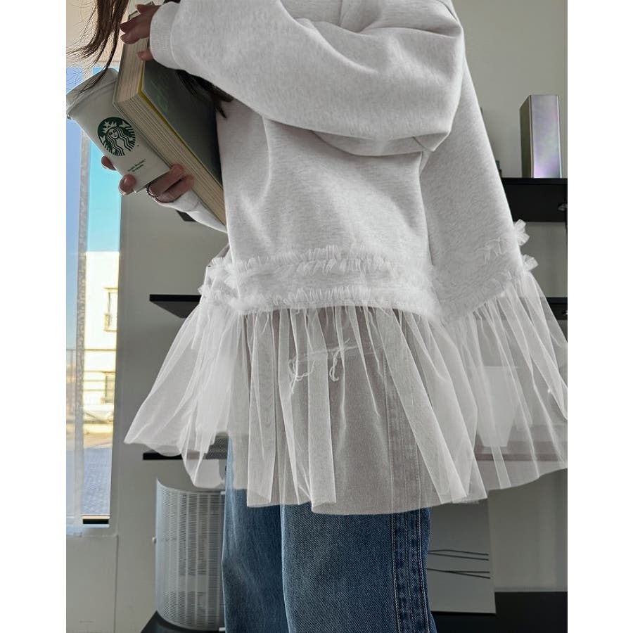 オーバーサイズクルーネックチュール付きスウェットトレーナー
