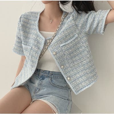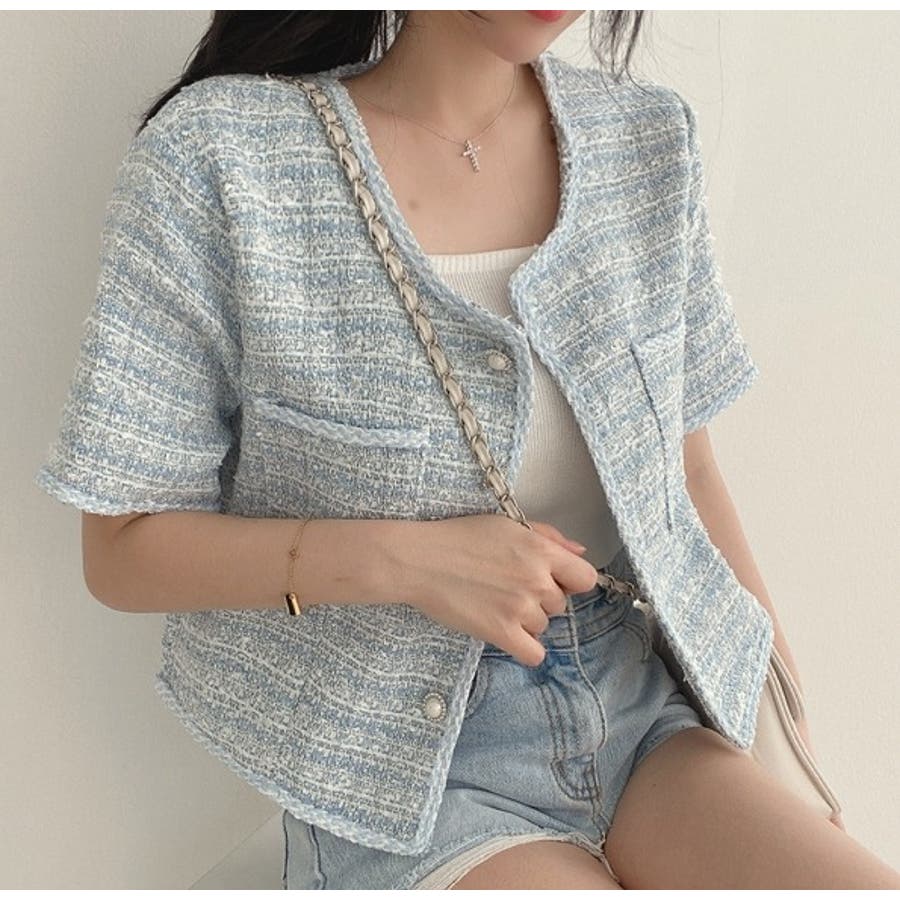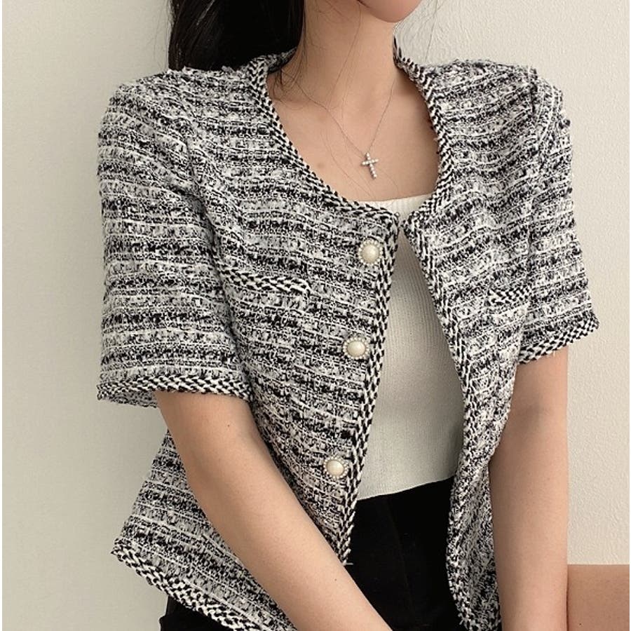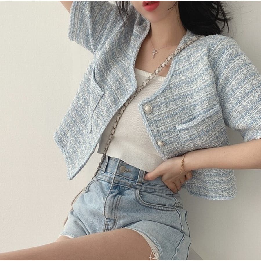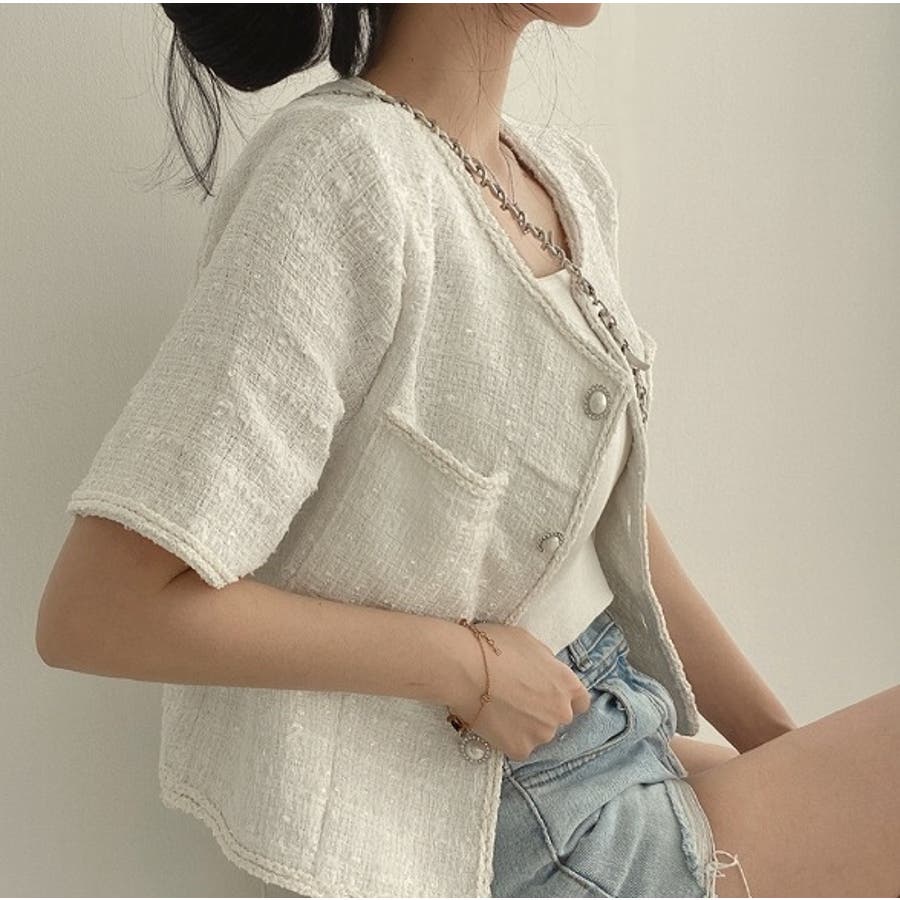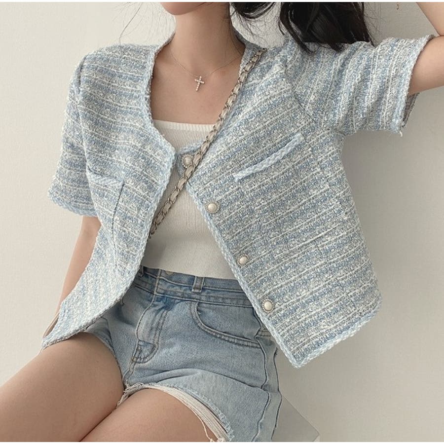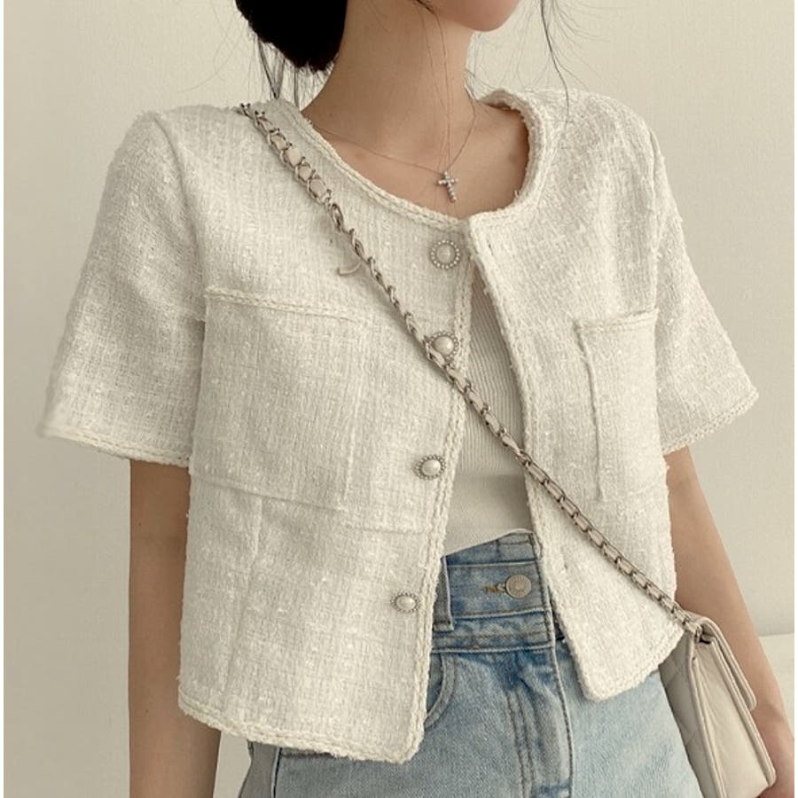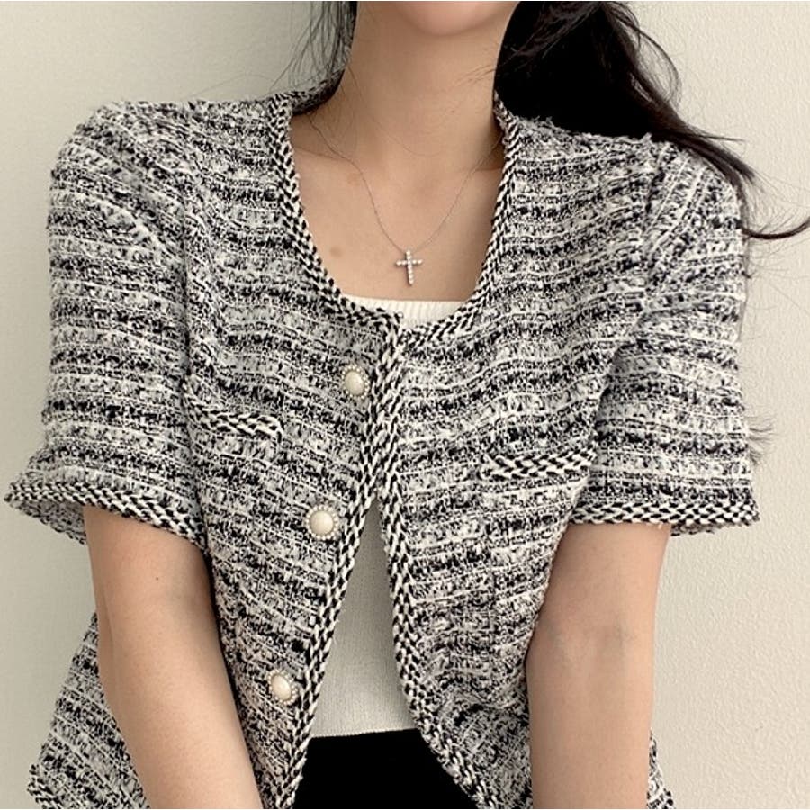 可愛い半袖シングルブレストツイードショートジャケット