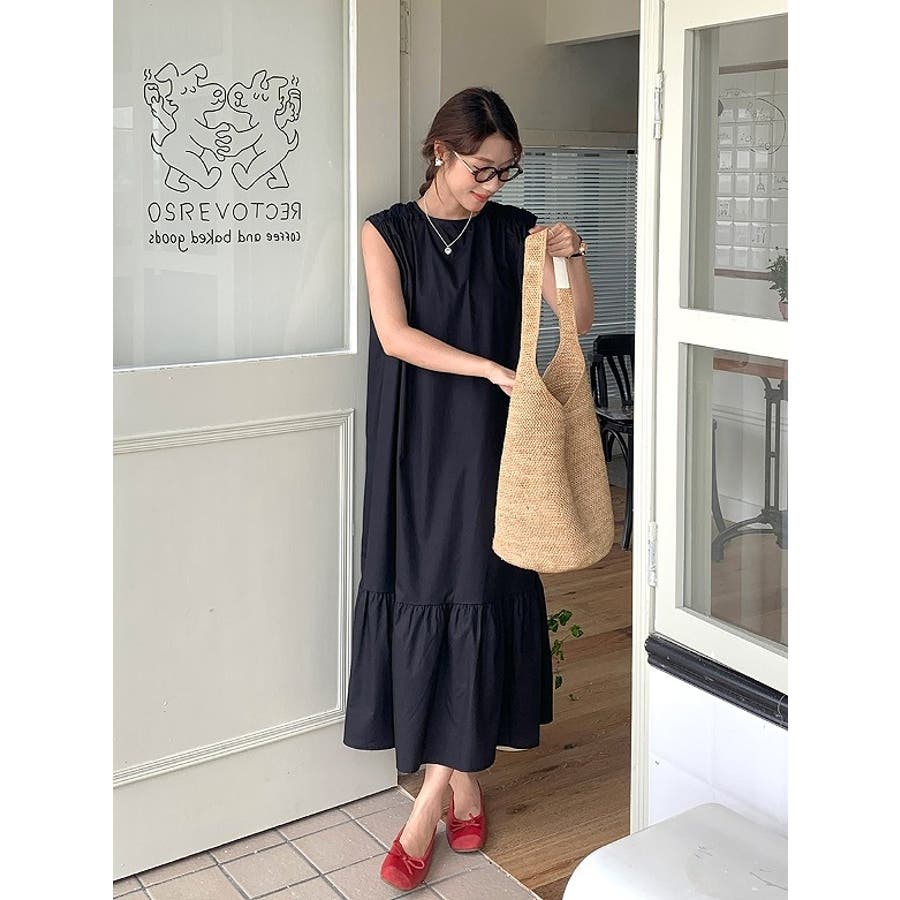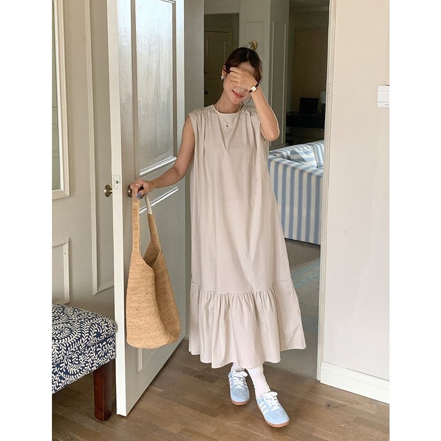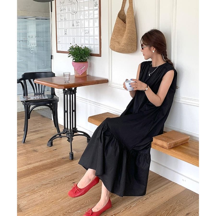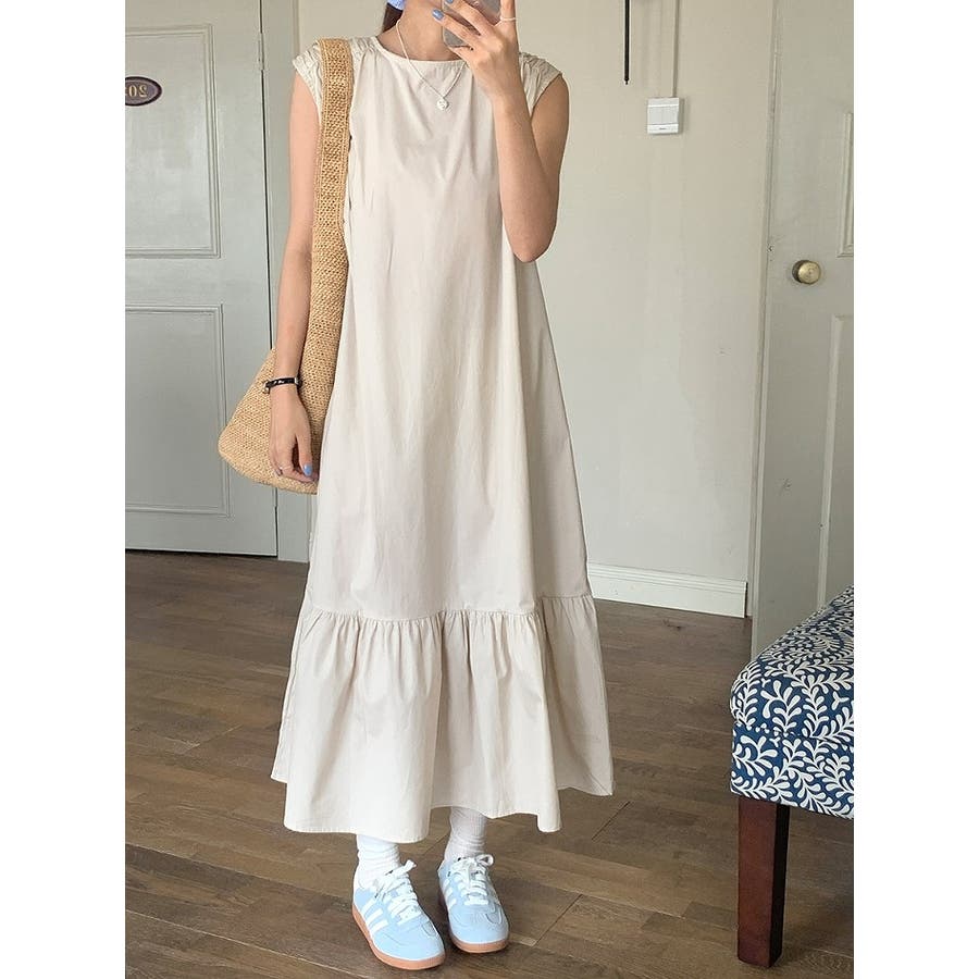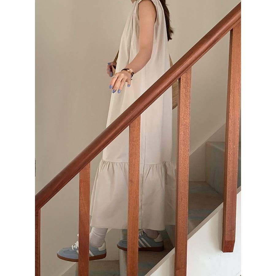 シンプル袖なし無地ジャケットワンピース